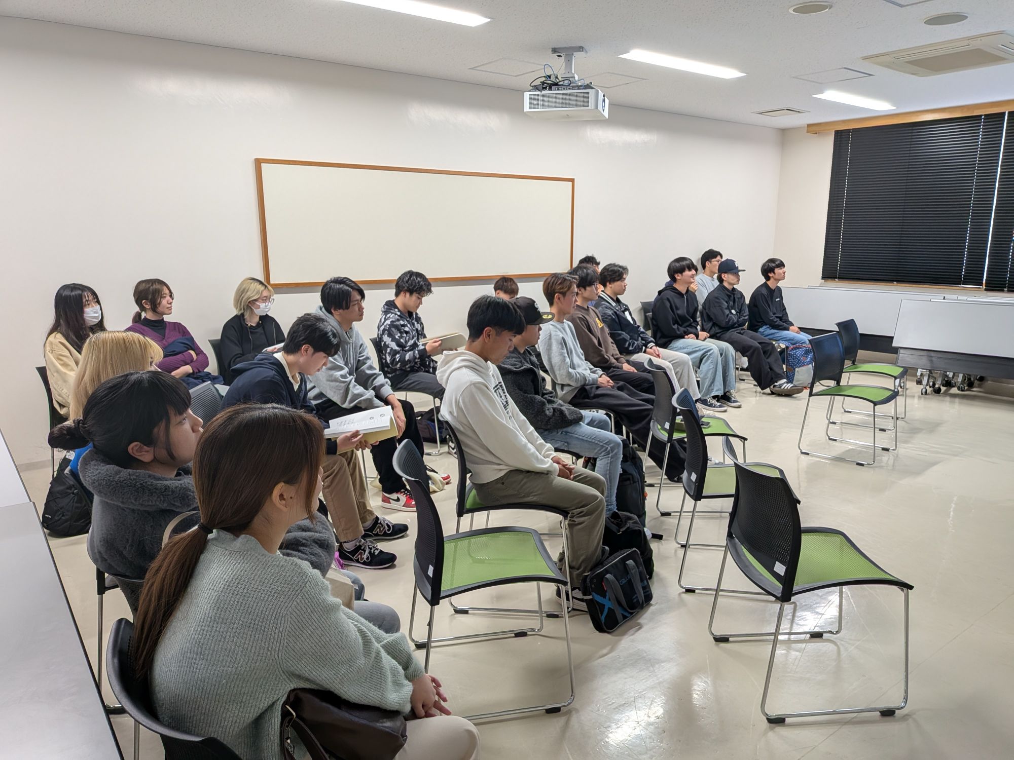 1年生は真剣に話を聴いて、自分の希望するゼミに思いをはせていました。