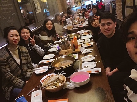 次に、今学期のクラスメイトのみんなとプラス担任・副担任と初めて会食に行きました。しゃぶしゃぶの食べ放題で肉は一回だけですが、サイドメニューが素晴らしくそこにはなんと寿司もあり、韓国の伝統料理やスイーツまで品揃えが豊富でした。一人1500円くらいで無制限なので満足のいくまで食べることができました。その後にはカラオケまで行き、クラスメイトの関係が縮まることができより仲良くなることができ良かったです。今学期で最後になるので悲しい気持ちもありますが、それ以上に私自身の韓国語能力が伸びたと思うのでとても嬉しいです。ですが、やはり別れというものは悲しいもので、2月の15日が最後の登校日なのでそれまで最高で楽しい思い出をたくさん作っていきたいと思います。また、期末テストもあるので最後まで気を緩めず、勉強もしつつ楽しみたいと思います。