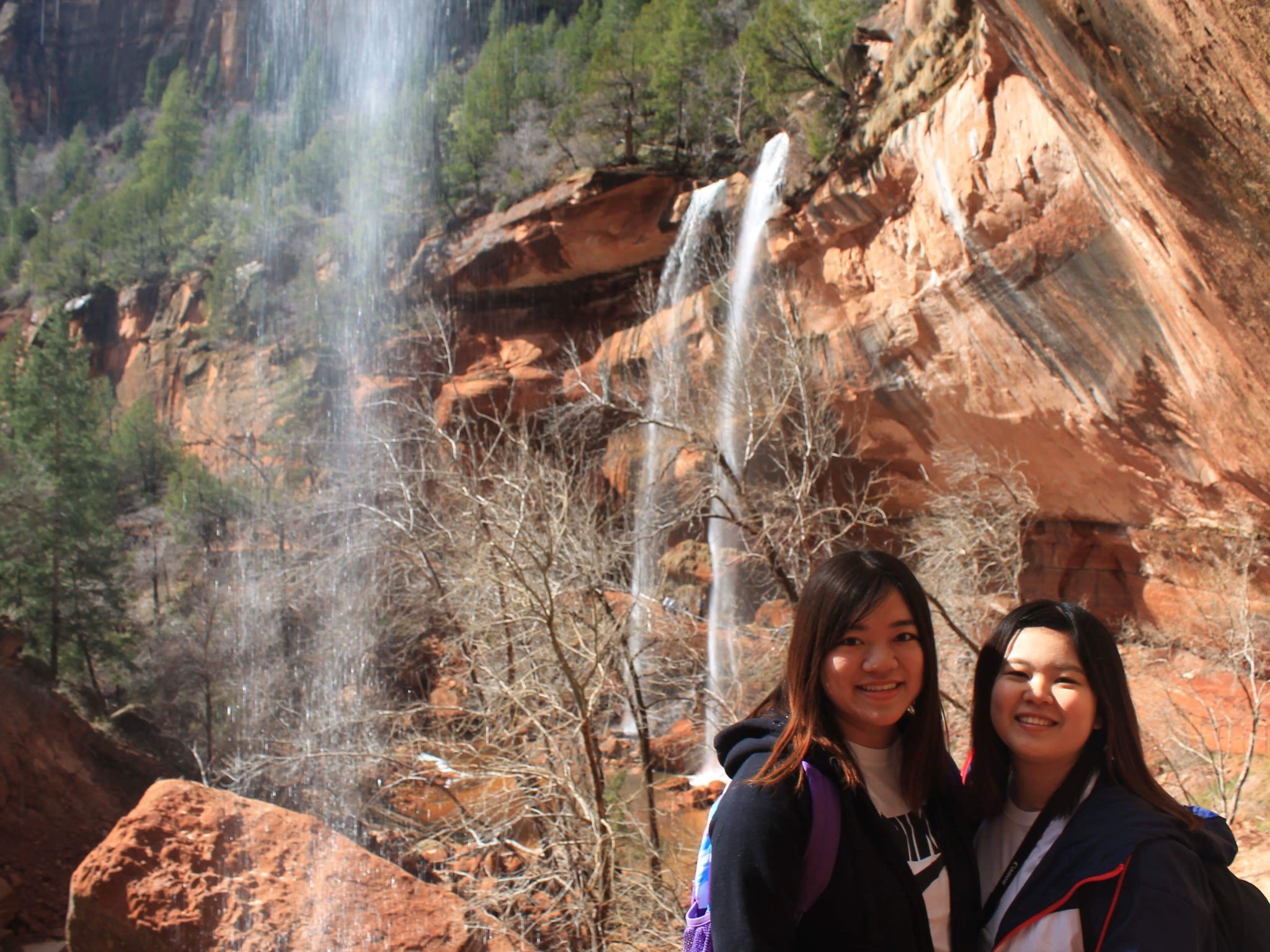 3月の4週目の土曜日に、留学生向けのハイキングに参加してきました。Cedar Cityから40分ほど離れた場所のSt. GeorgeにあるZion National Parkに行きました。江洲さんとアメリカ人のお友達と一緒に色々なハイキングコースを回りました。そこで、野生の鹿やリスを近くで見ることができました。初めて自分の目で見たリスは、小さくてとても可愛かったです。Zion National Parkはとても広くて、色々なコースを回るには公園の中をシャトルバスで回ります。急な山道や、崖のようなコースを登るのはきつかったけど、その先にあった滝などの綺麗な景色を見ることができてよかったです。