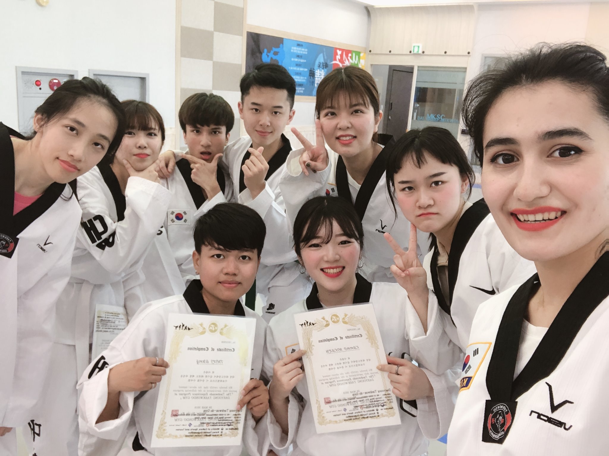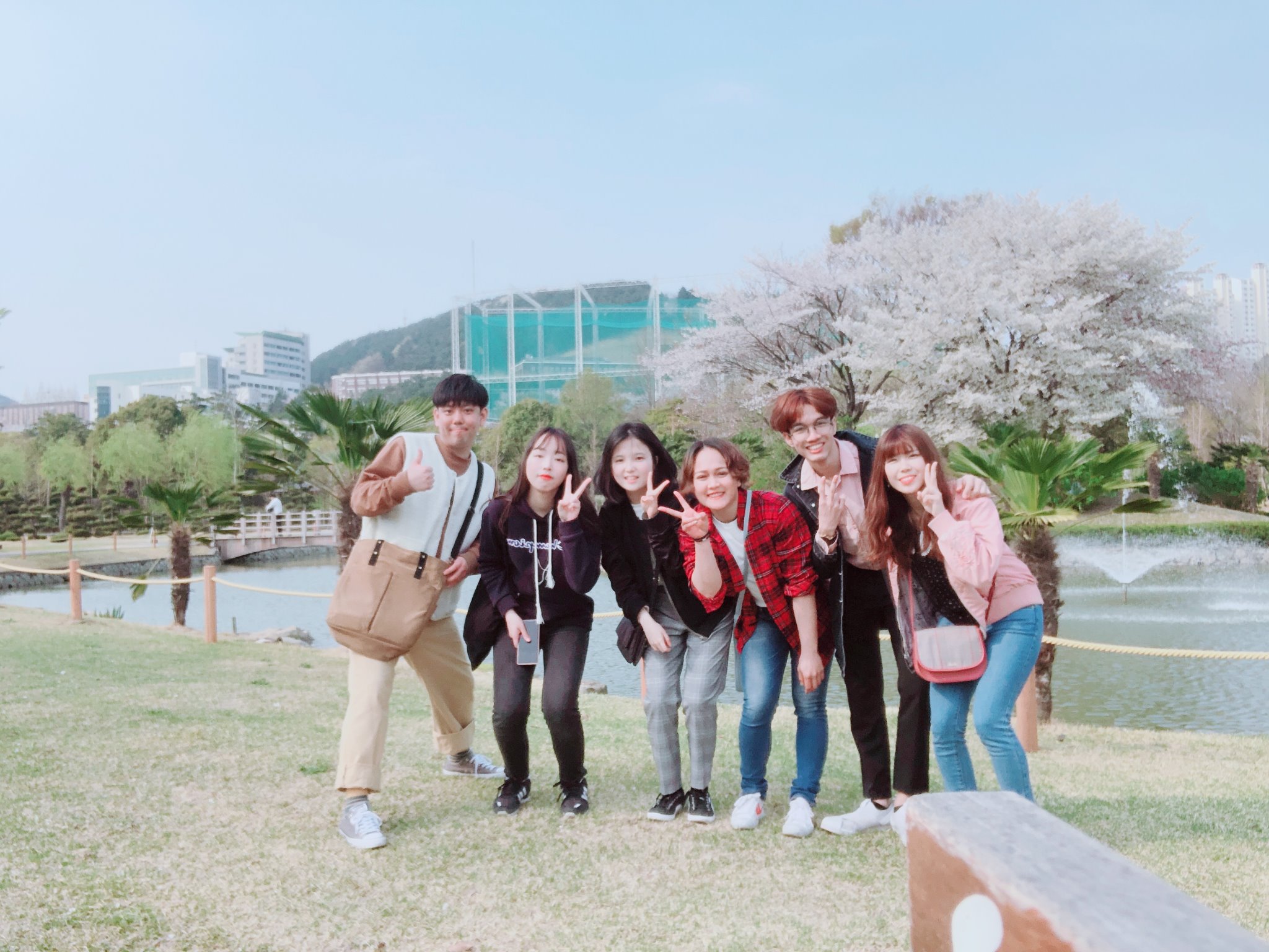 今回は、3月後半から4月前半までに行なったイベントや定期考査について紹介したいと思います。まず、3月22日に釜慶大の外国人留学生と韓国人のサポーターが交流するi-friend活動のオープニングセレモニーに仲のいい日本人の先輩と中国人、台湾人、タイ人、ベトナム人の友達と参加しました。オープニングセレモニーの中でゲームをしたりして韓国人サポーターの方や日本人と仲良くなれる機会があり、とても楽しかったです。また、毎月水曜日には「日本語会話クラブ」といったサークルのようなものがあり、そこで韓国人の方と交流して沢山の友達ができました。最初は少し緊張しますが何回か行くと慣れてくるので、韓国人の友人がほしい方は行くことを強くおすすめします!3月29日には、i-friendの英語圏に所属しているタイ人の友達と韓国人の方と一緒にお花見に行きました。そこで出会ったタイ人のお姉さんは韓国語が話せないので、英語を使ってコミュニケーションをしようと努力しましたが、自分も知らないうちに韓国語が口から出てきてしまい、自分の英語能力に失望したと共に、韓国語は成長したかな?と思えるようになりました。また、4月1日はピンクキャンパスデーといった桜まつりが校内で開催されました!沖縄とは違った桜を見ることができ、とても良かったです。また、外国人留学生向けの特別講義で、一日だけテコンドー体験をしてきました。久々に体を動かすことができて楽しかったです。もともと高校生まで空手を習っていたので、テコンドーの蹴りも比較的でき、空手とは違った部分も知ることができて、とてもいい体験になりました。