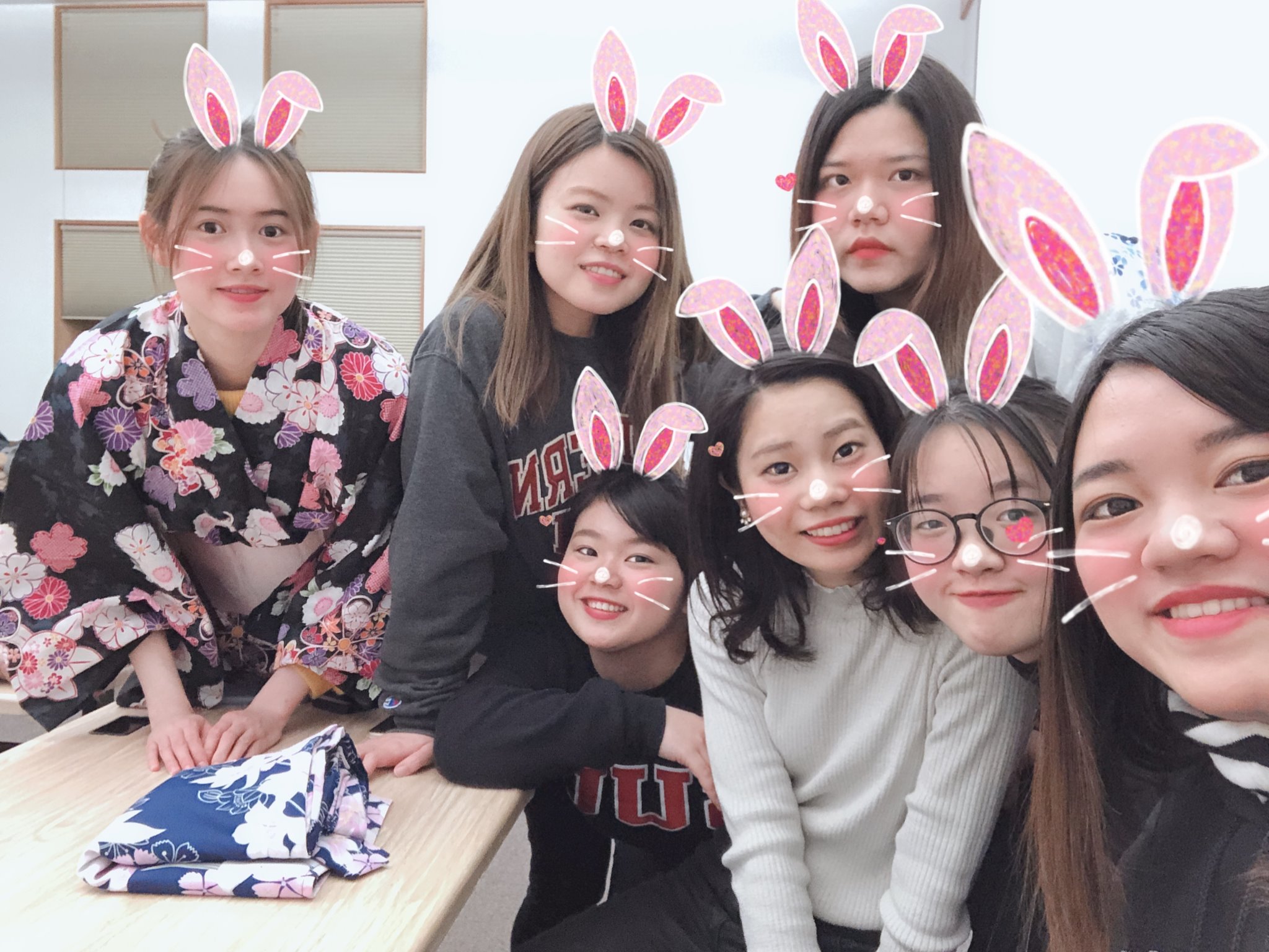 約9ヶ月間を通して活動してきた「日本語クラブ」も、とても楽しかったです。日本語クラブを通して、多くの他国の友人を作ることができたし、日本の文化や言語を伝えられることができてよかったです。着物の着付け、季節の手遊び、日本語を使ったゲームなどをしました。語学学校のクラスの先生から、日本語クラブはとても人気のあるクラブで多くの人が楽しいと話していたと聞いて、とても嬉しかったです。課題に追われながらも頑張ってよかったと感じました。最後のクラブの日には、日本食パーティを開き、手巻き寿司をみんなで食べました。沢山の人が日本について興味を持ってくれていて、とても嬉しかったです。