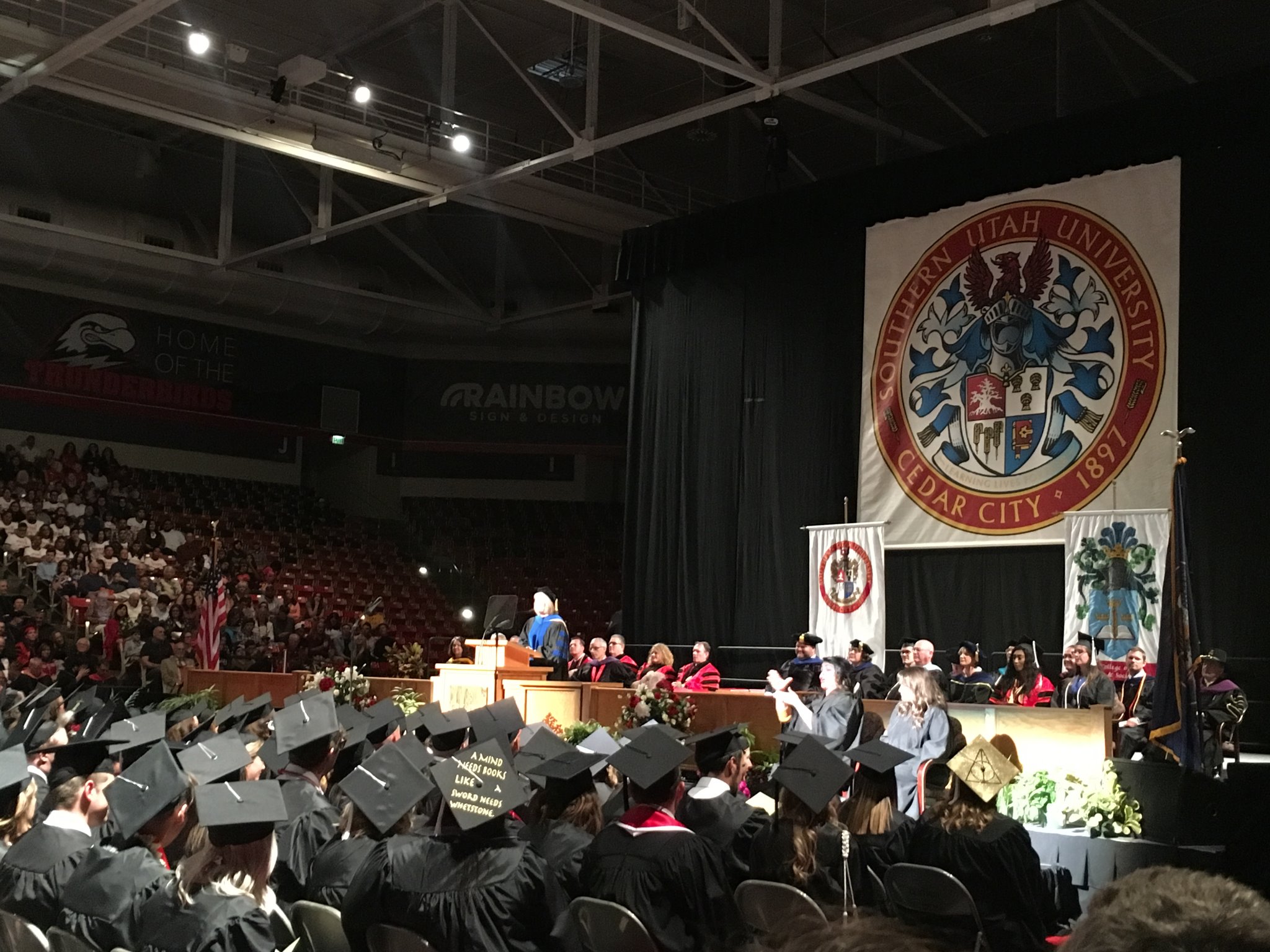 5月3日にSUUの卒業式に参加しました。SUUで唯一の日本人である先輩が卒業生として参加していました。テレビで見るような黒いガウンと帽子をかぶっていて、とてもかっこよかったです。みんな達成感に満ち溢れたような、晴れ晴れとした姿で、私もこの学校に通いたいなと思いました。アメリカの卒業式に参加できたことは一生の思い出になりました。