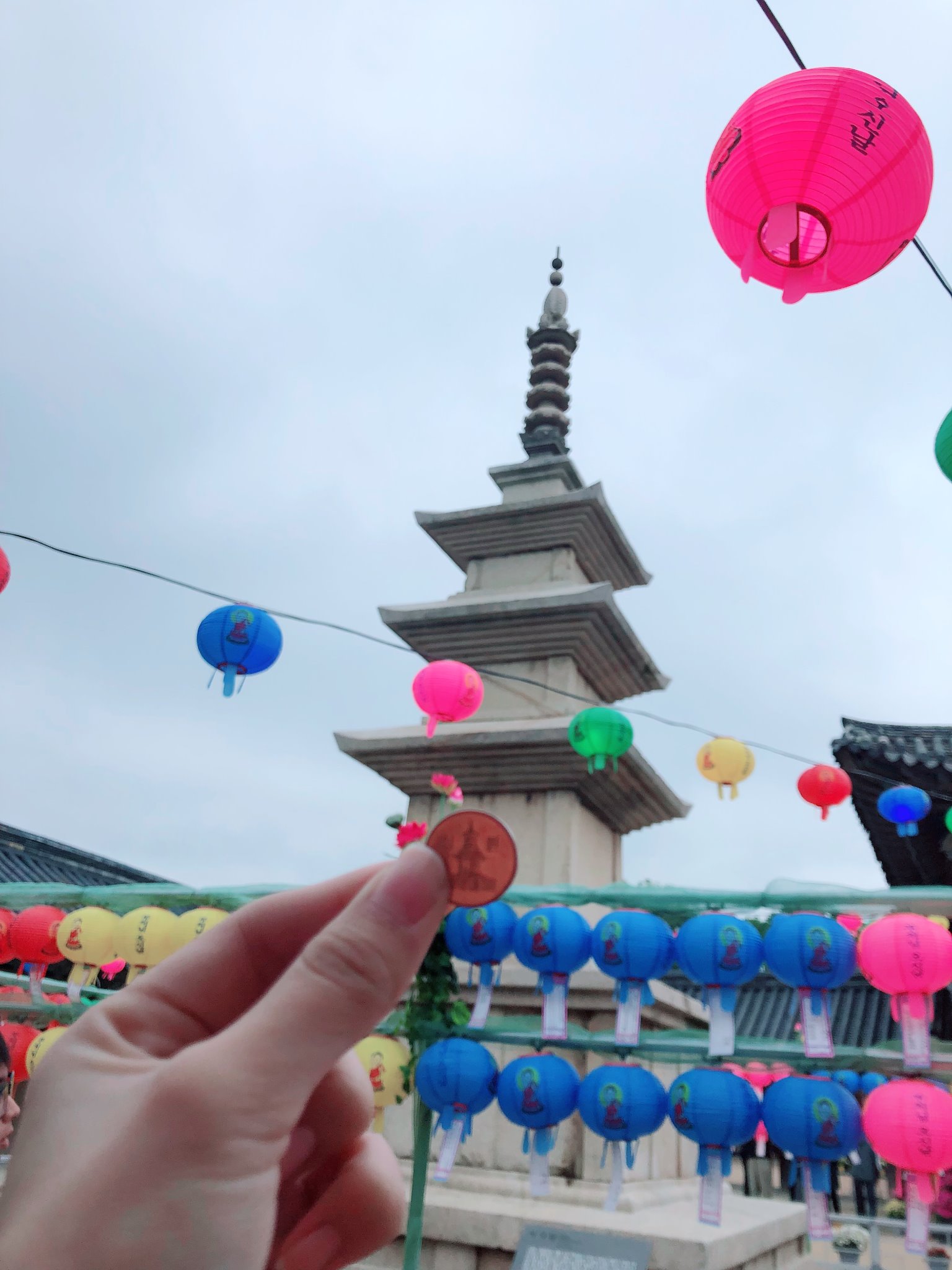 また、4月の末には交換留学生対象の日帰り旅行にいってきました。場所は慶州にある仏国寺という場所です。5月にはお釈迦様の誕生日があるということもあり、普段よりお寺が華やかで、感動しました!。その時は時間がなく、すべて見ることができなかったので、個人的にまた行きたいと思います。