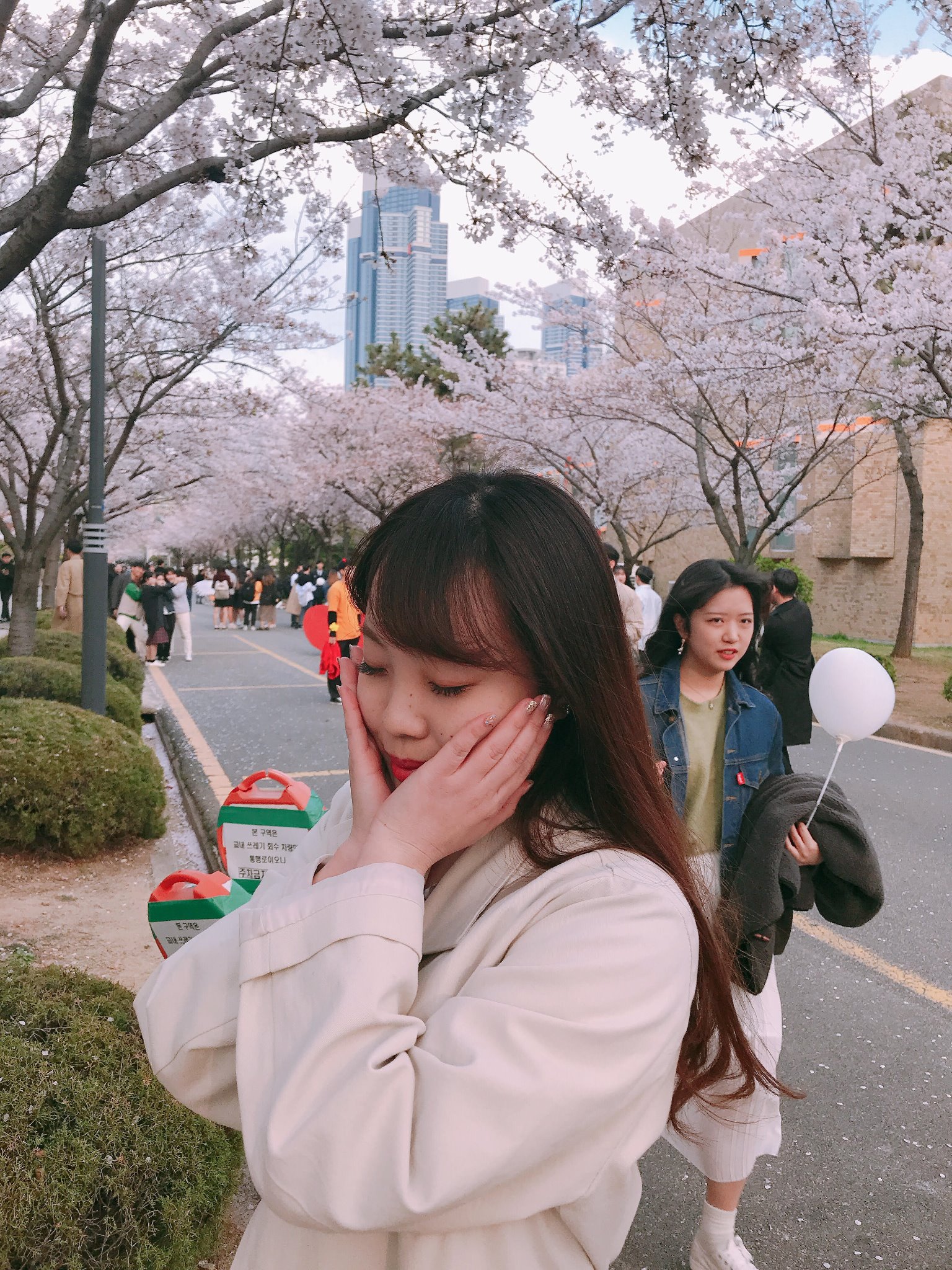 さて今月のmonthlyで3回目の報告となりました。今回は4月に行われた学校行事や語学堂の試験、大学の試験期間についてお話していきたいと思います。まず、4月1日にはプギョン大学内で「ピンクキャンパスデー」というお祭りがありました。なぜピンクキャンパスと言うのかというと、この時期には大学内に沢山の桜が咲き、キャンパス内が一面綺麗なピンク色に染まるからです。このお祭りでは屋台やサークル紹介ブース、ダンス、アクセサリー販売などをやっていました。私は一通り回って、その後に綺麗な桜と共に沢山写真を撮りました。また、この日驚いたことが、お祭りに来ている大学生のほとんどが高校の制服を着ていたことです。エイプリルフールだから、みんな制服をきていたそうです。韓国の制服は日本に比べてタイトでおしゃれな感じなので、私の目には大学生が韓国アイドルのように見えて、とてもかっこよかったです。