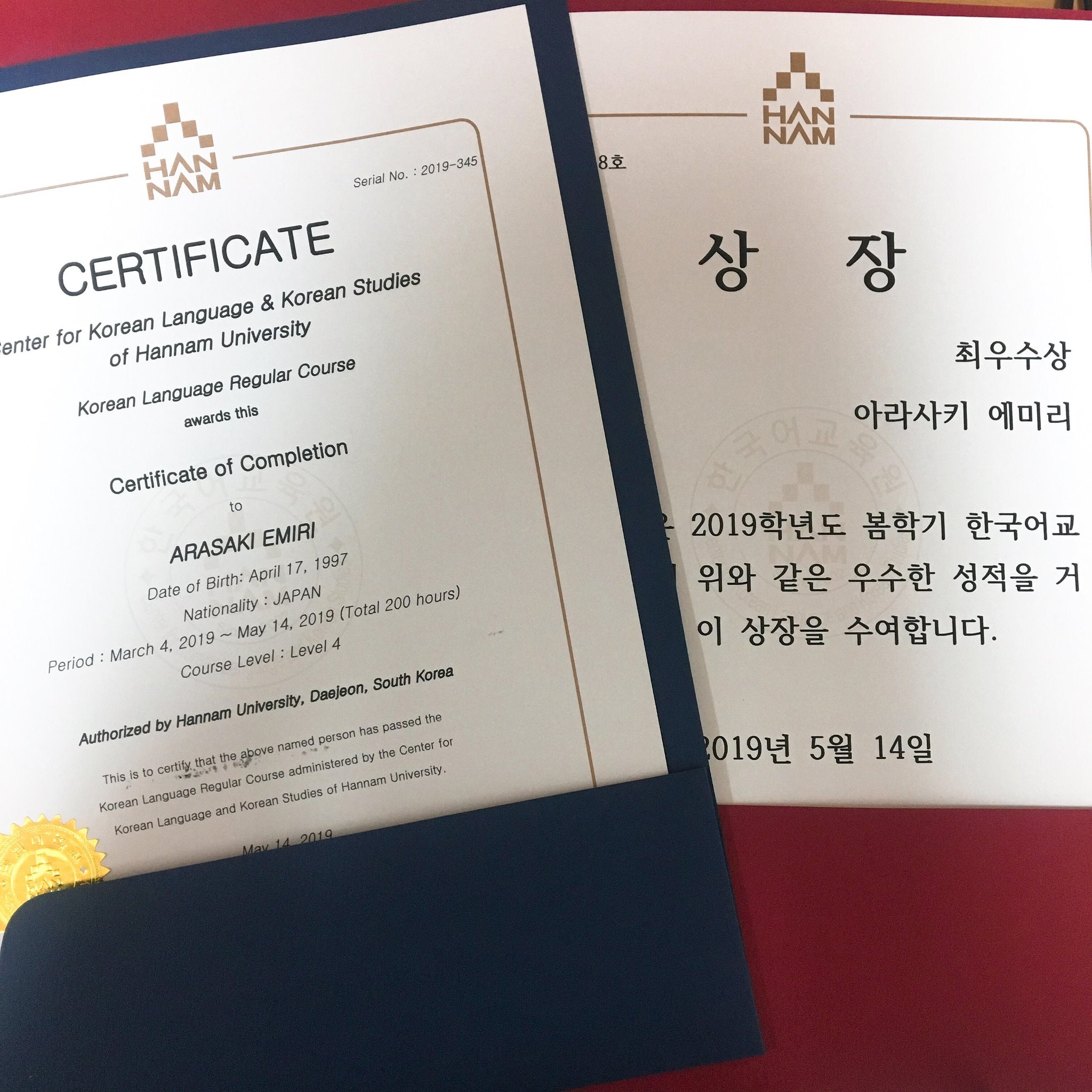 まず、5月の中旬には語学堂春学期の期末テストと修了式がありました。期末テストは不安でしたが自分ができることは全部できたかなと思います。修了式は学校の中にあるホールのようなところで行われました。無事4級のクラスを修了できたうえに今回の4級Bクラスの最優秀賞をもらうことができました!最優秀賞は思ってもみなかったことだったので本当に嬉しかったです。4級Bクラスの友達と離れるのは少しさみしいですが夏学期もこの調子で頑張りたいです。