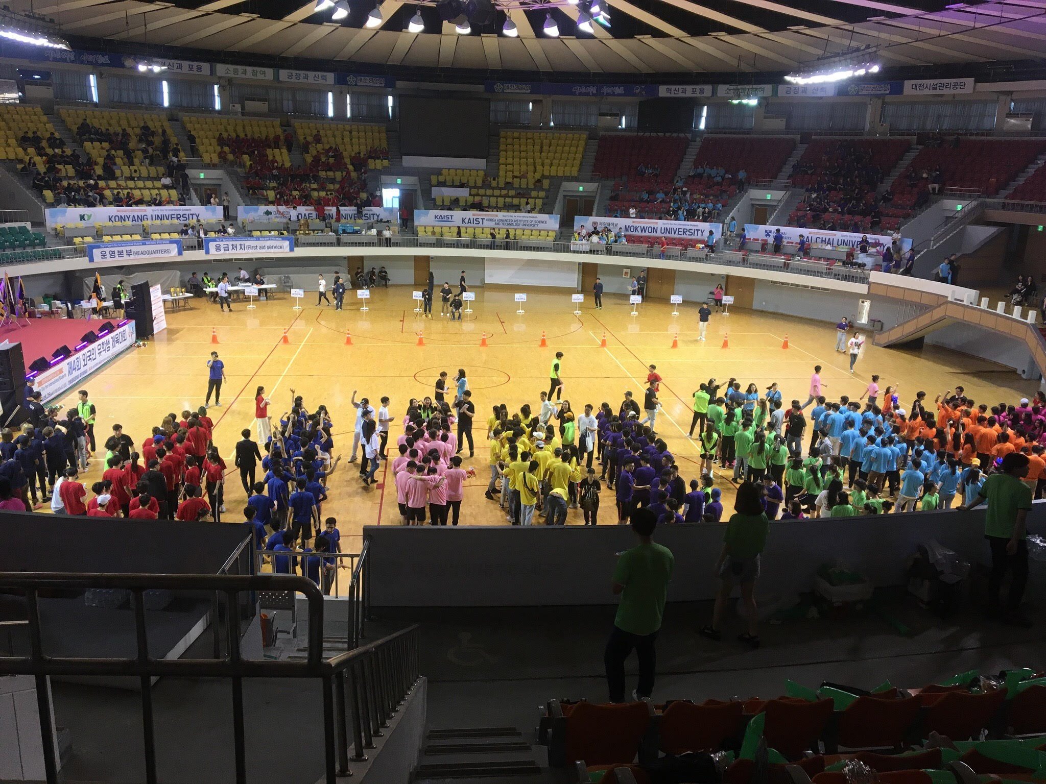 次に、テジョン市の外国人留学生体育大会についてです。これはテジョン市にある大学の外国人留学生対象の運動会で、10の大学の留学生が参加していました。競技は綱引きやリレー、玉入れなどさまざまな競技をしました。韓南大学はいろいろな競技の中で大縄跳びと綱引きがめちゃめちゃ強かったし応援も盛り上がって楽しかったです。競技のほかにも各大学の出し物対決などもあり思っていた2倍くらいは楽しかったので参加してよかったと思いました。今回の運動会で韓南大学は優勝したのですごくいい思い出になりました。