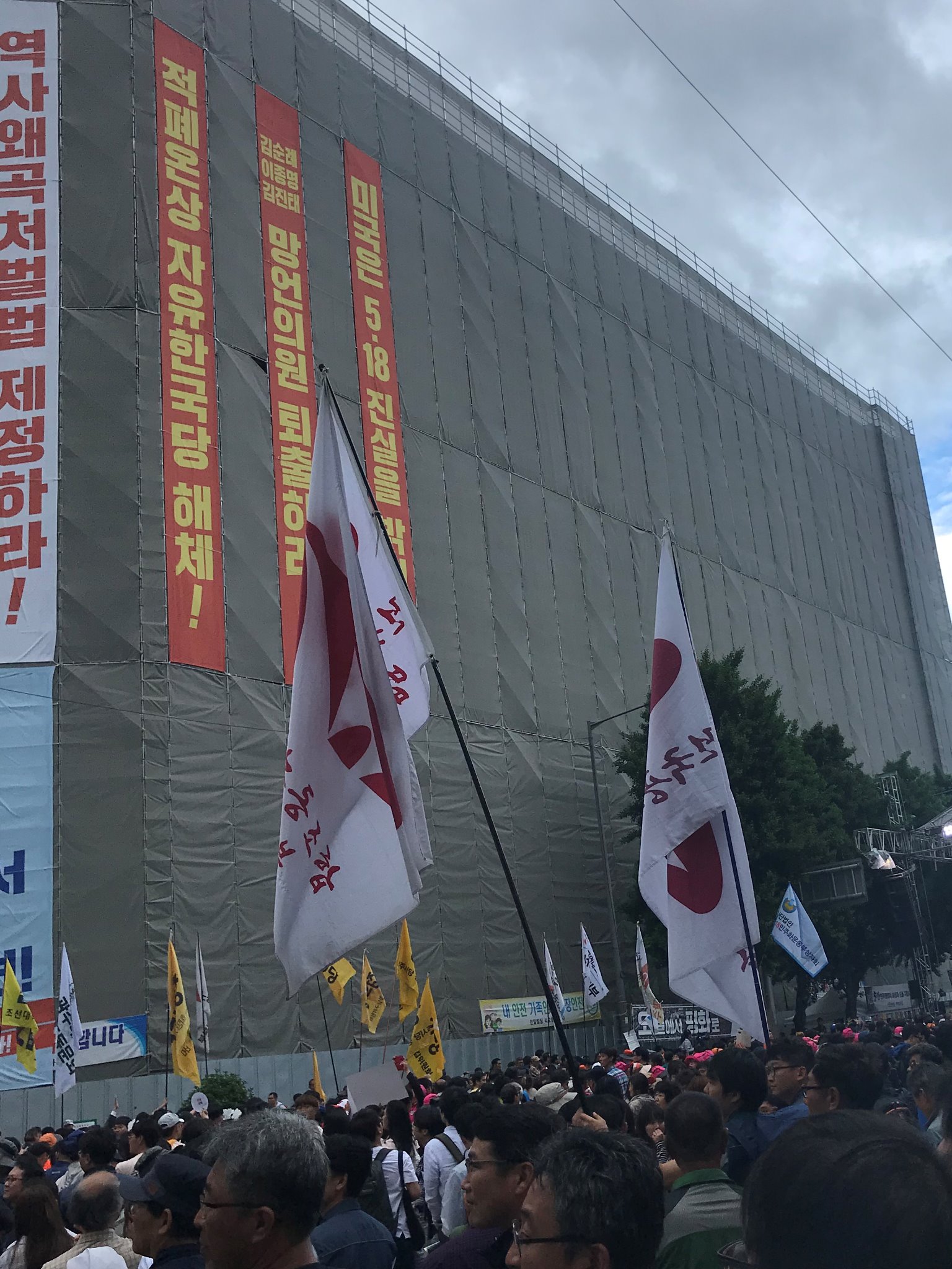 次に、韓国の下の方にある光(クァンジュ)に1 週間遊びに行きました。光には韓国人の友達が住んでいて、1 週間お家に泊めてくれました。17 日から23 日まで光に滞在したのですが、ちょうど18 日が光で数年前に起こった光事件の日で、市民が集まり韓国政府に抗議するデモのようなものを見ました。それを見て、もっと韓国の歴史について知りたいと思いました。5 月の後半には、観光地として有名な釜山(プサン)を旅行しました。釜山は、私が行ってみたかった所の一つで、韓国内で海が綺麗ということで有名です。私が行ったときに、ちょうど釜山の海雲台(ヘウンデ)の海の砂浜で砂祭りが開かれていて、砂で作られた像が砂浜にたくさんあって見学することができました。でもやっぱり海は、沖縄の方がきれいだなと感じました。釜山では、夜景に一番感動しました!!夜には、高層ビルがライトアップされて、初めてあんなに綺麗な夜景を見たと思うくらいに美しかったです。