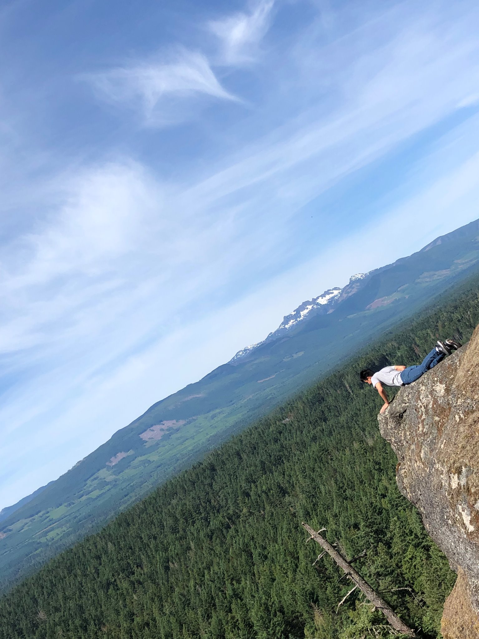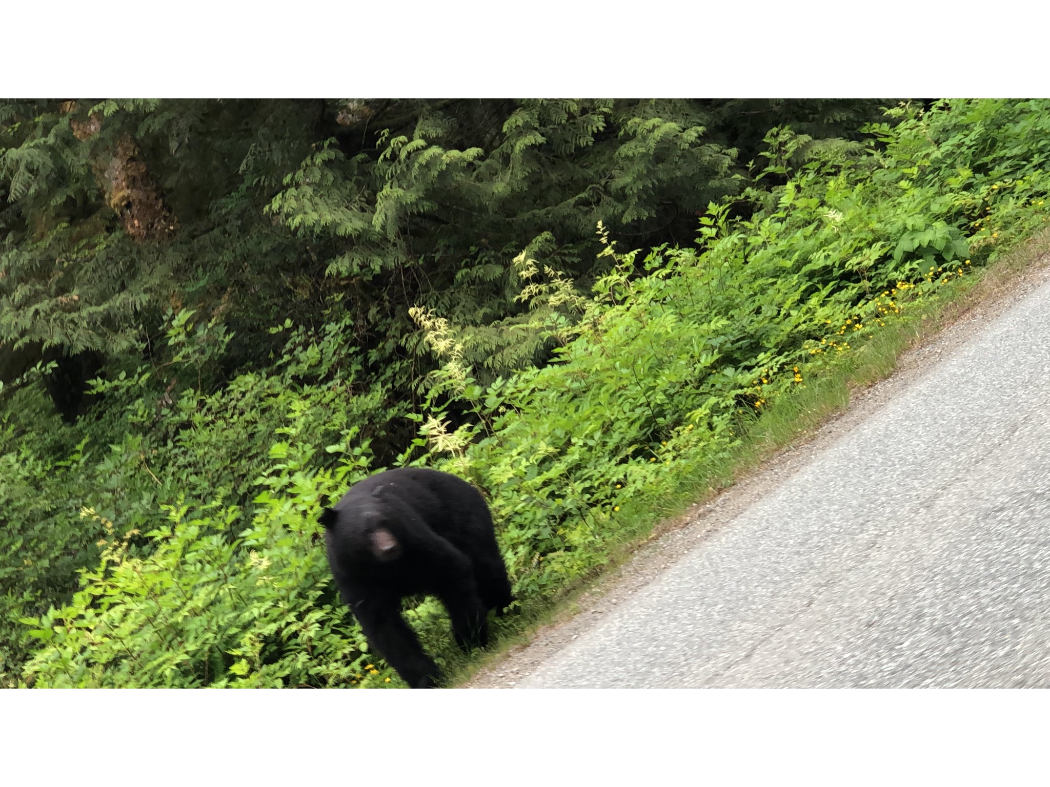それから今月の1番の思い出はトフィーノという街に行ったことです。ナナイモから車で2時間くらいの所で大きい街ではないのですがサーフィンをするスポットして有名です。この日は天気があまり良くなくて海はとても寒かったのですが、それでも何名かサーフィンをしている人を見ました。さすがサーフィンの街だなと思いました。トフィーノに向かう途中でもいくつかの観光スポットに訪れました。まずLittle Mountainという所に行きました。そこは崖になっていて景色がとてもきれいでした。高所恐怖症である私ですが勇気を出して崖の先端まで行ってしっかり写真を撮ってきました。他にも滝を見に行ったり森を探検したりとたくさんの自然に触れました。また、この日1番テンションが上がったことはトフィーノから帰る途中に野生の熊に遭遇したことです。滅多に見れないらしく、その熊は道路沿いを歩いていたのですが車で何回もそばを往復して写真をたくさん撮りました。長旅で疲れていたのですが熊を見たことで一気にテンションが上がりました。とても貴重な体験ができました。