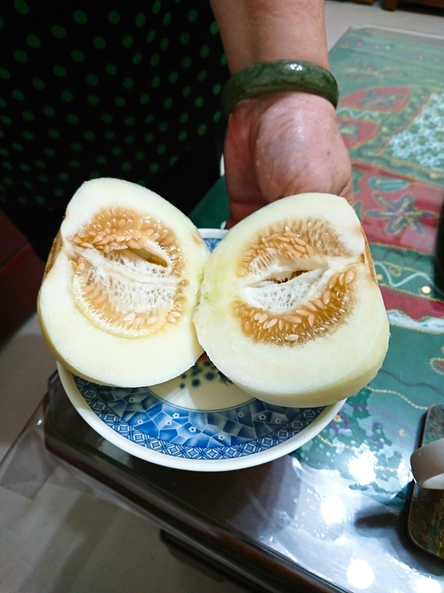 台湾では日本と比べて物価が安く、果物の値段がとても安いです。私がこの市場で見た果物(マンゴー、スイカ)などは特に安く、スイカは1玉約120円、マンゴーは一個約80円前後で売っていて、聞いてみると、これらの果物は今が旬である為、安く販売しているとのことでした。販売している果物の中で、龍眼という果物がありました。見た目はライチにとても似ていて、食べてみると味もよく似ていますが、ライチに比べると水分が少なめで、ドライフルーツにして食べたり、実を乾燥させたものをスープなどの料理に使うこともあるそうです。名前の通り、龍の瞳のような丸い果物です。写真のメロンのような果物は香瓜という名前です。甘味は少なく、さっぱりとしています。見た目がよくリンゴに似ている果物(レンブ)もよくスーパーや夜市でみかけます。見た目からはリンゴのような味を想像しますが、食べてみると中身がスポンジ状になっていて、おもしろい食感になっています。