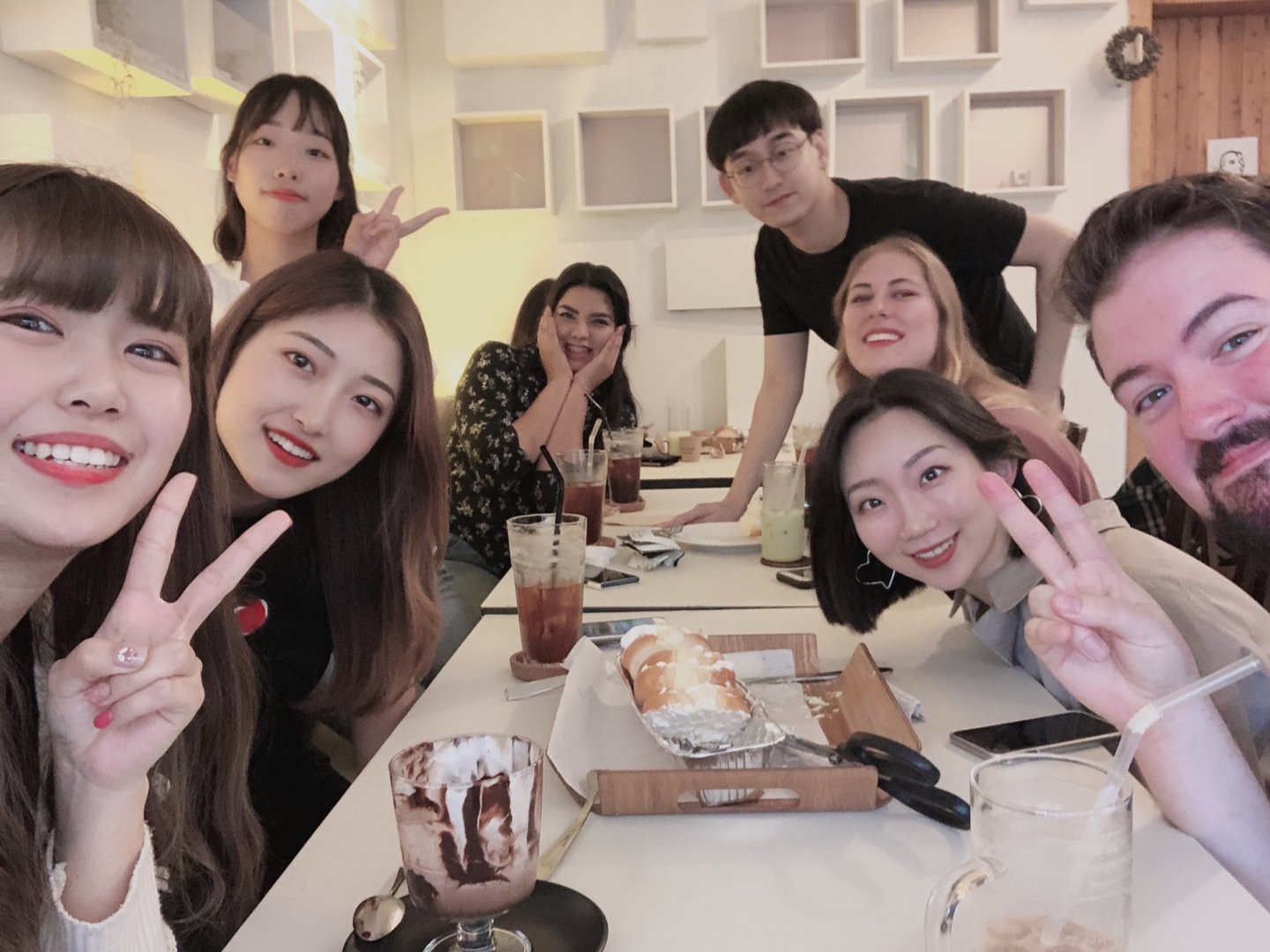 釜慶大学では、10月30日にインターナショナル・デイとハロウィンパーティーがありました。インターナショナル・デイでは、各国のブースが用意されており、そこでいろいろな国の食べ物や文化を体験することができます。私は、語学堂のメンバーと一緒に回り、オーストラリアやインドネシアの伝統料理を食べました。そして、10月に大好きなルームメイトの誕生日会を沖縄のメンバーと一緒に祝ったり釜山で一番大きな花火大会に参加したりしました!また、英語英文学科の先輩が、ご飯に誘ってくれて、日本・韓国・メキシコ・アイルランドのメンバーで遊びました。外国人留学生の中では、韓国語を全く話せない方がおり、共通語を英語にしてみんなでおしゃべりをしました。私は英語の聞き取りはある程度はできますが、話す能力が低下してしまい、質問をしたくても聞けずにもどかしかったのですが、隣りにいた韓国人のお姉さんが「頑張って喋ってみてごらん」と私に話す機会をくれたり、英語を一生懸命教えてくれたので楽しく会話することができました。その後、アイルランドの方と言語交換をすることになり、私のおかしな英語と翻訳機を片手に三時間、英語での会話の練習に付き合ってくれました。私は、一人で机に向かって単語や文法などを勉強するより、外に出で実際に友達と外国語で話したりしたほうが身につくスピードが早いタイプだと気づき、語学勉強は自分にあった勉強法をするのが大事だと改めて学びました。いつも私にたくさんのことを教えてくれる友達たちに感謝の気持ちでいっぱいです。