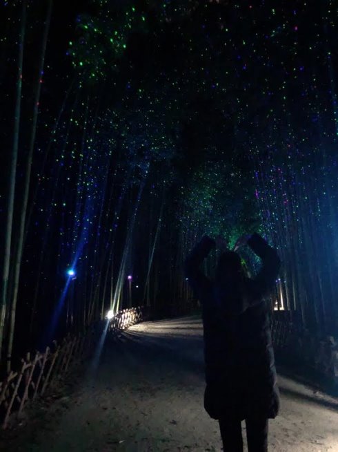 12月の下旬には、日本人の友達と一緒に釜山のすぐ隣にある蔚山(ウルサン)に遊びに行きました。蔚山は、韓国7大都市の一つで、韓国を代表する自動車メーカー・現代(ヒュンダイ)グループの工場や施設があることでも知られており、韓国で有名な産業地帯とも呼ばれています。蔚山では、韓国の昔の制服を着て昔の街並みを背景に写真を撮ったり、おしゃれなカフェや海、そして巨大な岩をに行きました。蔚山はクジラ料理が名物らしいのですが、クジラを食べる勇気が出ず、私たちは無難にユッケビビンバを食べてしまいました。私が特に蔚山で気に入った場所が、太和江(テファガン)という公園の中にある竹林です。夜になるとライトが点灯され、きらびやかな竹林がとても綺麗で感動しました。私は韓国に来て色々なところへ旅行に行きましたが、蔚山のこの竹林の景色が一番忘れられません。蔚山は、あまり観光地として知られていませんが、釜山からはバスで約1時間ほどで、なんと往復1000円で行けるので、釜山に留学に来た際はぜひ蔚山にも訪れ、蔚山の魅力に触れてほしいです!!