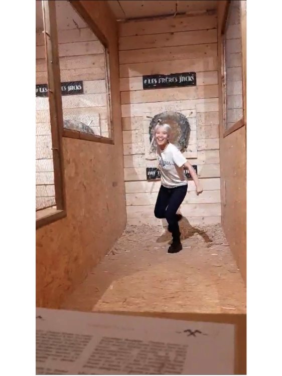 3月2日はバカンス明けの登校日でした。ですので、クラスメートの三人と私は3月1日にインタビューの宿題をしに公園に出かけました。インタビューの後レポートを纏めるためになぜか昼間からバーに行こうと言い出したので、私はお酒飲みながらレポート書けるの?と確認しましたが、大丈夫、大丈夫!フランスでお昼から飲むのは普通だよと、本当にバーでお酒を飲みながらレポートをまとめました。また、初めておの投げを体験しました。最初はうまくできませんでしたが、だんだん投げていくうちに的によく当たるようになりました。日本に帰る前にもう一度できると良いなと思います。
