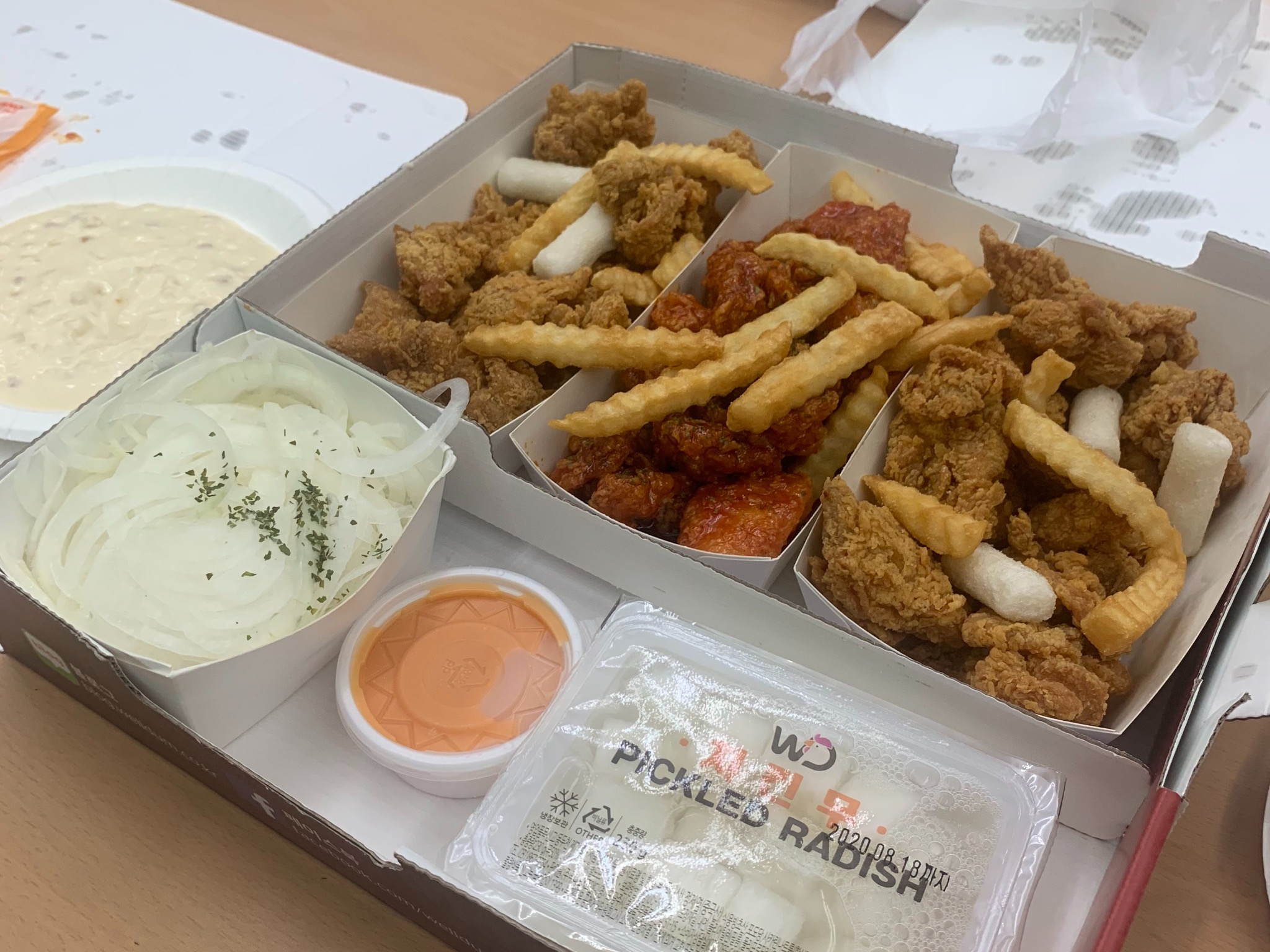 また、高級クラスになって初めてのテストもありました。高級クラスに入る自信が私にはあまりなくて、正直ついていけないところも多くあって大変な部分もありましたが、何とか無事に試験を終えることが出来ました。そのあと、クラスの先生がテストが終わったからクラス皆にチキンを買ってきてくれて皆で食べることが出来て、本当に楽しかったし来週からまたちゃんと対面授業になるのでもっとクラスのメンバーと仲良くなれたらと思います。