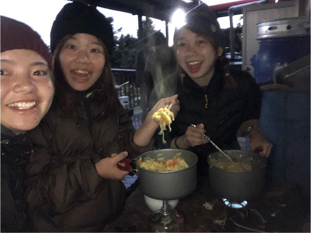 そして、夏休み最終の週に嘉明湖という台湾で二番目に高い山にある湖と言われている景色を見るために、四日間かけて山を登り続けましたとても遠くにある場所なので、台湾人の友人たちの車の運転で南部まで行きました。毎日朝5時に起床、何時間か山を登り続け、夕方からは大きな山小屋で自炊をし、8時には消灯です。山の上はダウンを着ていてもとても寒く、夜は帽子をかぶらないと危ないほどでした。多くの人も山を登っていて、台湾人は山登りが好きだなと実感しました。私が眠れずに外で友人とお喋りをしていると、山小屋の管理人さんが声をかけてくれ、管理人さんたちと夜食を食べながらトランプをしたり、沢山お喋りをして本当に楽しい時間を過ごしました。山登り目的の嘉明湖を見たときは本当に奇麗で感動しました。上級者向けの山登りの場所にも関わらず、これが初めての山登りの私にとっては苦しかったですが、その分感動や映画のような奇麗な景色、星などを見ることができたし、改めて台湾人の温かさ本当に一生の思い出になりました。