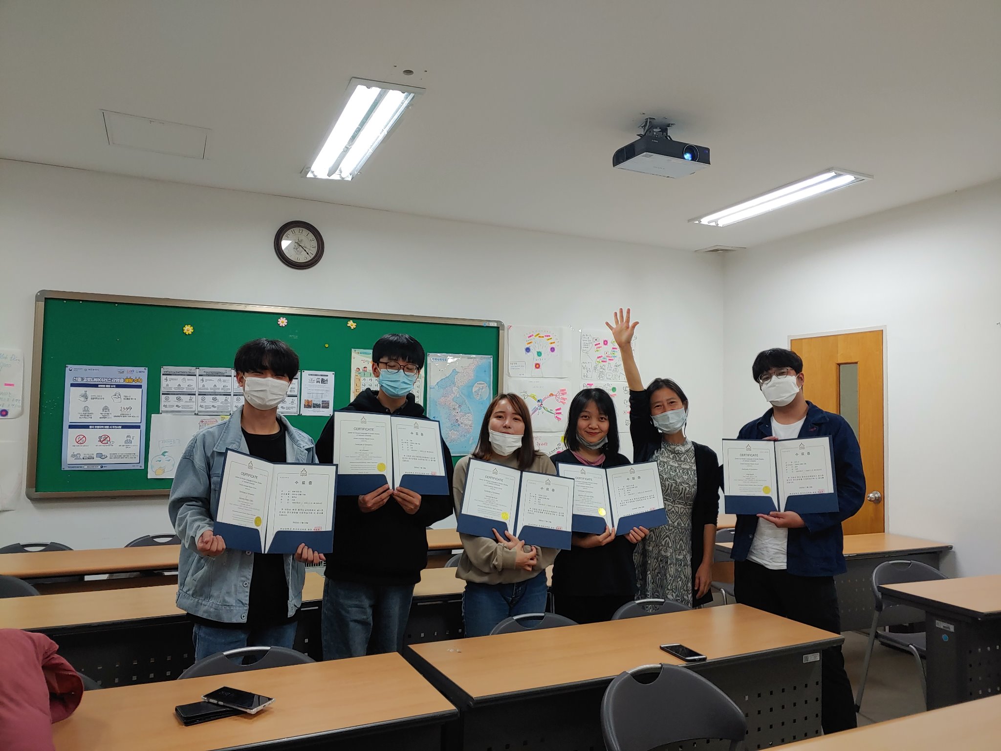 さて、今回は私にとって本当に大きな出来事があった月でした。今月、約9か月間続けた語学堂が最後でした。今まで毎朝早く起きて、9時にパソコンの前に向かって授業を受けたり、語学堂に9時までに登校して先生とずっと韓国語で会話して授業を受けたり、文化体験をしたりしてきてきました。話すには韓国語が共通言語の環境の状態で、わからない単語があったとき、他の言い方に変えてみたり韓国語で質問してみたりとそんな体験ができるのもほんとに語学堂という環境だなと思います。それを9か月続けてきて、今回修了証書をもらってちゃんと修了することが出来ました。語学堂は本当に自分が語学の実力を伸ばしてくれたものでした。語学堂に通っていたおかげで先月あったTOPIKの試験も5級を取ることが出来、6級まであと4点でした。そんな語学堂を修了してほんとに終わった感じもするし、少し寂しく感じます。そんな語学堂を終えて留学生活が終わりに近づいてきたように思います。