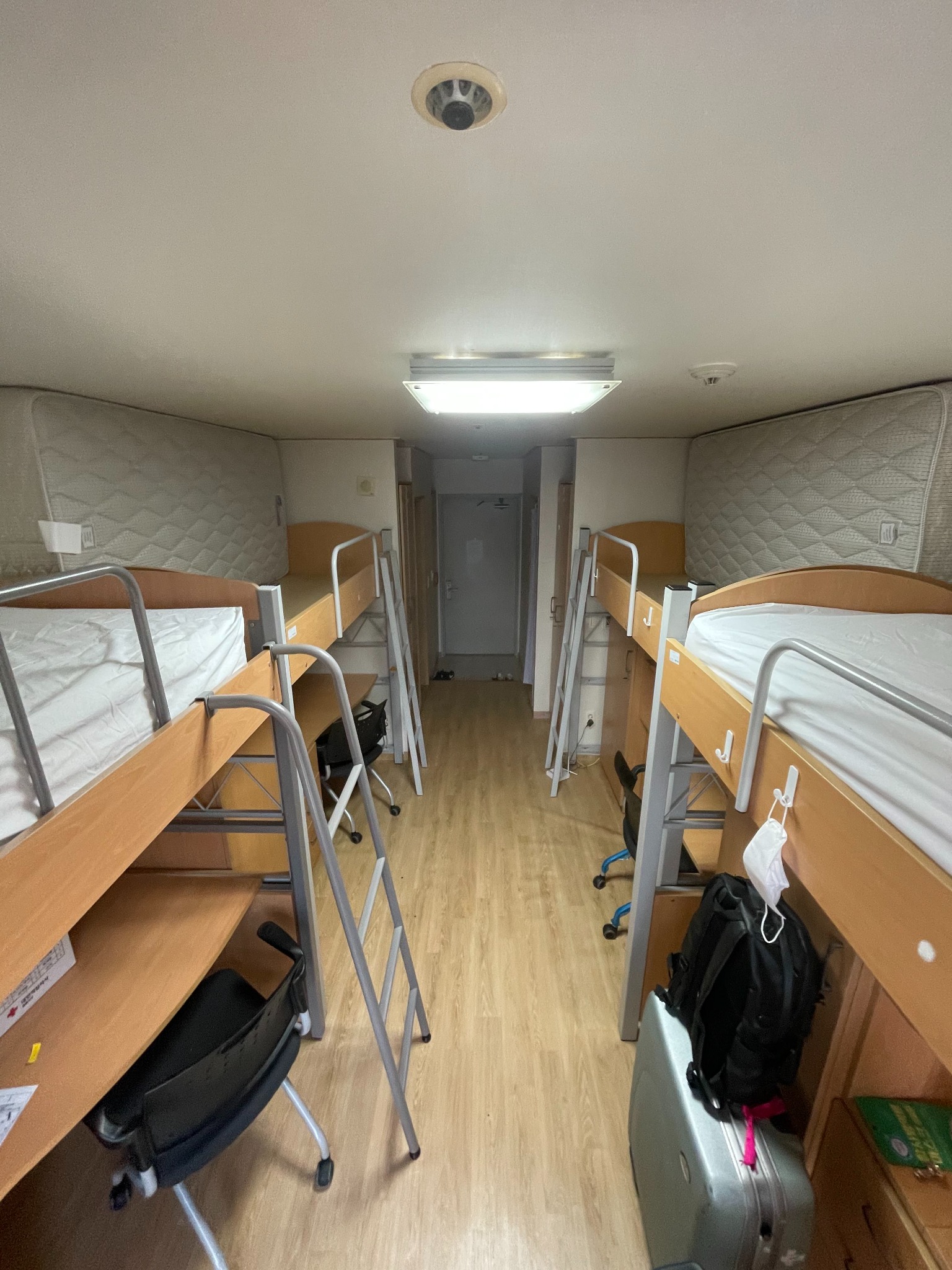 隔離が終わり、外の冷たい空気はとても気持ち良かったです。4人部屋の寮に緊張していましたが、コロナの影響で外国人専用寮は空き部屋が多く、私たちは現在2人で使用しています。階ごとに供用キッチン、冷蔵庫、テレビのある休憩室、洗濯機・乾燥機があり、その他に必要な日用品はダイソーやイーマートで揃えました。ダイソーは学校のすぐ近くにもあり、とても便利です。地下鉄やバス停から寮までは歩いて20分ほどかかりますが、コンビニは隣の韓国人寮にもあってすぐ利用できます。3月からは学校が始まり、やることも多く忙しくなると思います。コロナ化の中、留学生を手伝ってくれる멘티(メンティ)の韓国人学生の力も借りて、外国人登録や銀行口座開設など必要な手続きを進めていきたいと思います。隔離生活の報告の割合が多くなってしまいましたが、以上で2月のマンスリー報告を終えたいと思います。