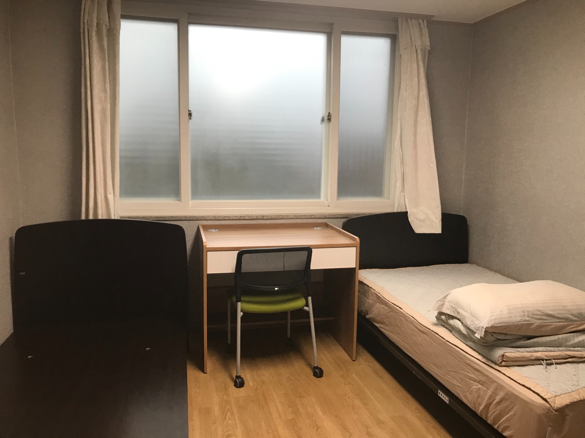 24日のお昼に隔離が終わり、すぐに嘉泉大学の寮へ向かいました。久しぶりに外の空気を吸って、景色を見るととても嬉しく、やっと始まる留学生活にわくわくしました。私たちが一年間生活する寮は、学校の敷地内にありますが中心のキャンパスから坂を15分ほど登った奥の方にあります。今学期は留学生が少ないらしく、私たちは四人部屋を二人で使用することとなりました。寮(写真3)には生活用品がないので到着してすぐに近くのマートに買い出しに出かけました。大学前にあるバス停から四駅ほどで大きなマートがあるのでとても便利です!