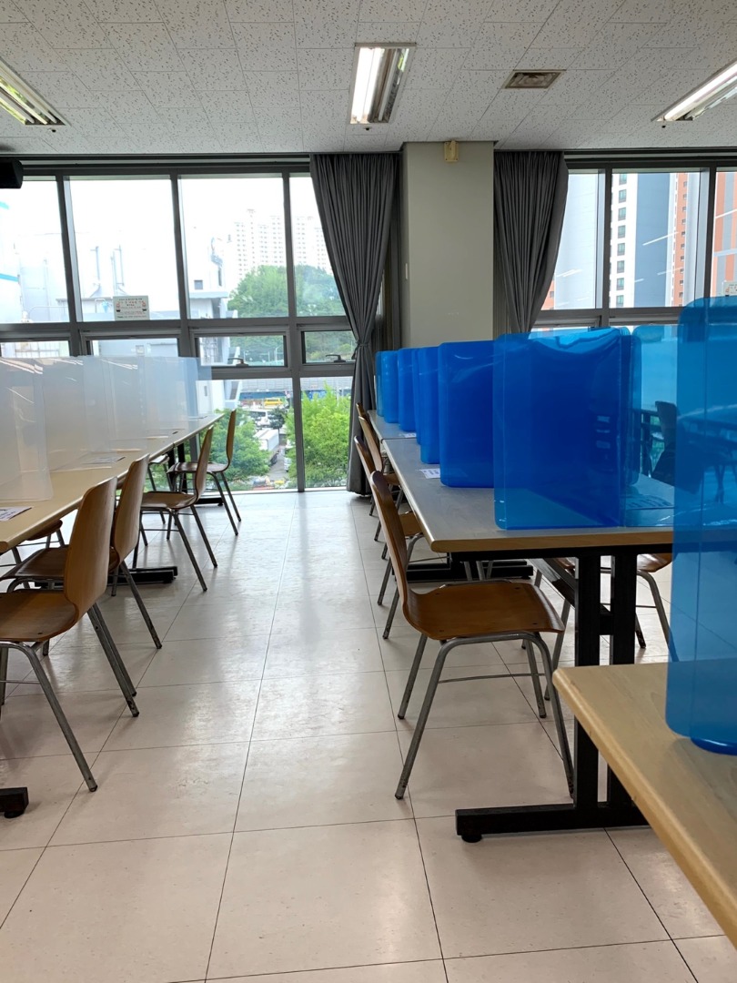 さて、留学すると気になるのは寮ですよね!そこで今回、少しだけ寮の設備を紹介したいと思います。まずは、「食堂」、食堂は朝昼晩決められた時間に開放されています。私は今は一日3食の料金にしていますが、自分の生活スタイルに合わせて、朝昼2食や平日のみなど、調整できるのが魅力です。(その分の差額は返金されます!)そして今は、コロナ禍ということで食堂に入る際は体温チェックと消毒、座る席一つ一つに仕切りがされており、会話はできるだけ避けるようにというルールがあります。本当なら友達とお話ししながら食べることもできるのですが、今はできないので毎日Youtubeを見ながら食べています。メニューも様々です。韓国料理は辛い物が多いので、苦手な人にとって最初はきついですが、少しずつ慣れます。たまにラーメンとかが出るのでそれが楽しみです。私はメニューが辛すぎてどうしても食べられない場合、寮一階にあるコンビニに行って好きなものを買っています。またその横には、カフェがあるので寮だけで快適に過ごせる環境は整っていると感じます!