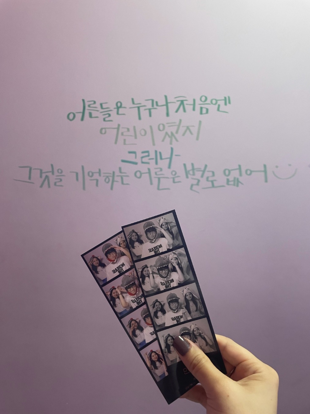 韓国人のお友達が、軍隊に行く時が来てしまい私と徳本さんで見送りを兼ねて最後に思い出を作りました。沖縄で有名なあぐー(黒豚)は韓国語で흑돼지フㇰテジといい韓国でも食べることができます。あぐーのおいしいサムギョプサルを食べて、韓国版のプリクラのような写真を3人で記念に撮りました。韓国のものは日本のプリクラのように自動で顔が加工され可愛く映るような機能はなく写真のように写るため、韓国人の友達は日本のプリクラを見るととても不思議がります。これも日韓の違いになりますね!そして最近では、軍隊でも限られた時間ですが携帯を使用することが許され、インターネット手紙という専用アプリを通して、離れた軍人に手紙を送ることのできるシステムもできたそうです。私たちも登録の仕方を教えてもらい、軍隊に行っても手紙を書く約束をして見送りをしました。せっかく出会えた友達に会えなくなってしまうのは悲しいですが、軍隊に行く友達を見送来るのは、韓国に住んでこその経験だなと思いました。