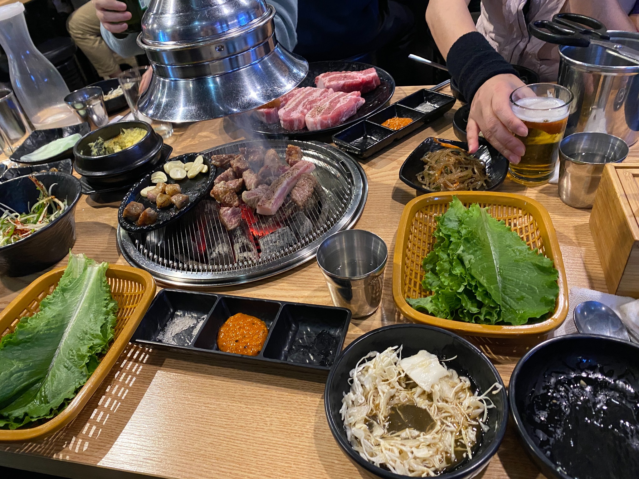 そして、話が少し変わりますが、今月は私が受けている講義のうちの1つ「日本語通翻訳演習」の教授に同じ日本人留学生と一緒にサムギョプサルをご馳走して頂きました。初めて教授とご飯を食べに行くということで最初はすごく緊張していましたが、すごく話しやすくて生徒思いの方でとても楽しくご飯を食べることが出来ました。普段教授とご飯を食べることはできないことなのでこのような機会を作ってくれてすごくありがたかったです。