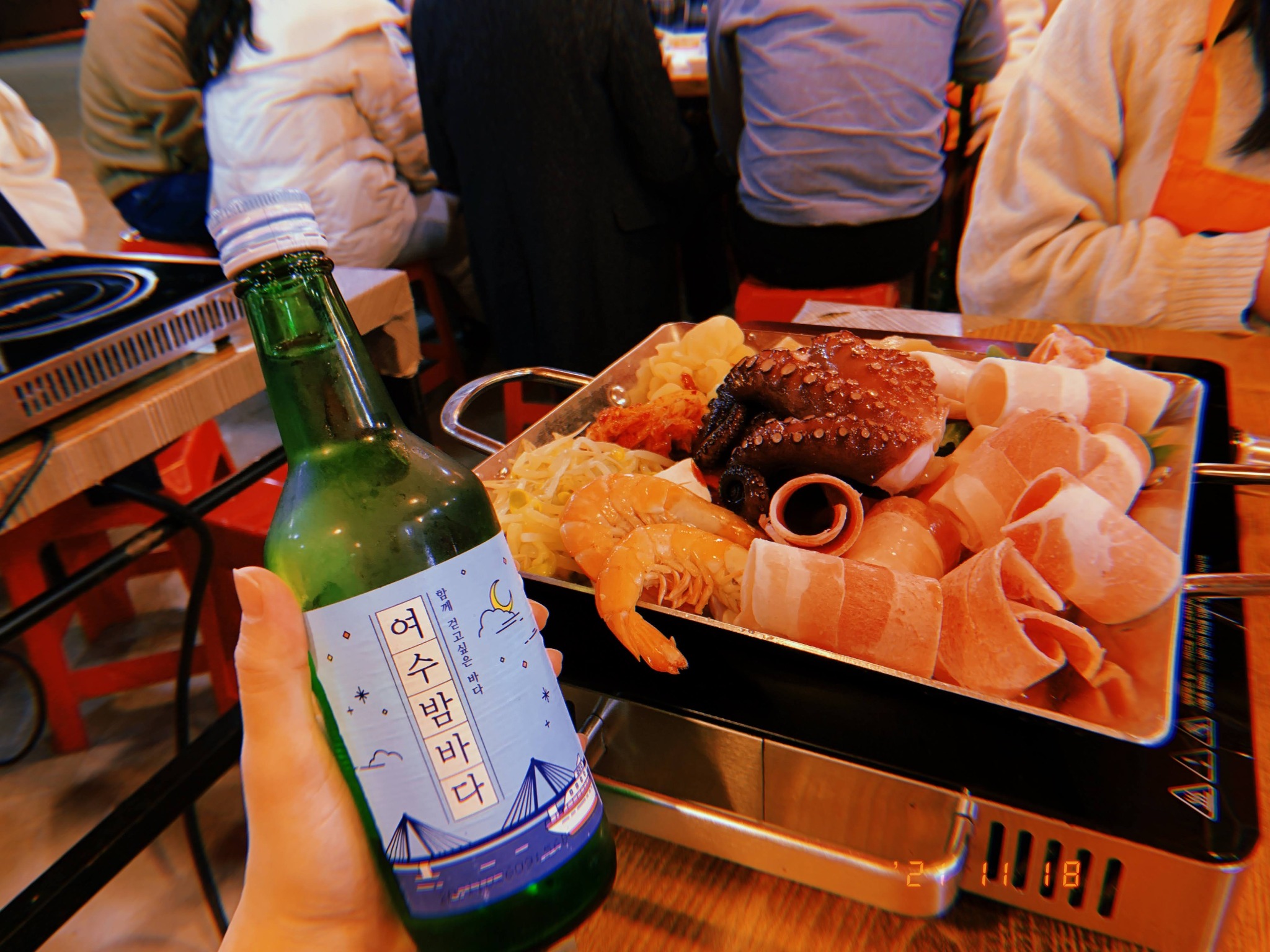 語学堂も休みに入り、韓国でも少しコロナが落ち着いたということで留学に来て初めて友達と旅行に行きました。釜山は韓国の一番下にある都市なので、そこから高速バスやKTX(韓国の新幹線)に乗り、上に上る感じでソウルを目指して旅行してきました。まず、麗水(ヨス)というところに行きました。麗水は海沿いの屋台が有名です!そこで海鮮を食べたりや麗水のお酒を飲んだりと楽しく過ごしました。次に全州(チョンジュ)という、ビビンバの発祥地に行き、おいしいビビンバを食べたり観光地を回ったりして楽しみました。全州は韓屋(ハノク)という韓国の伝統家屋が立ち並ぶ地域です。日本でいう京都のような雰囲気がありました。せっかくなので韓屋に宿泊していい思い出になりました。