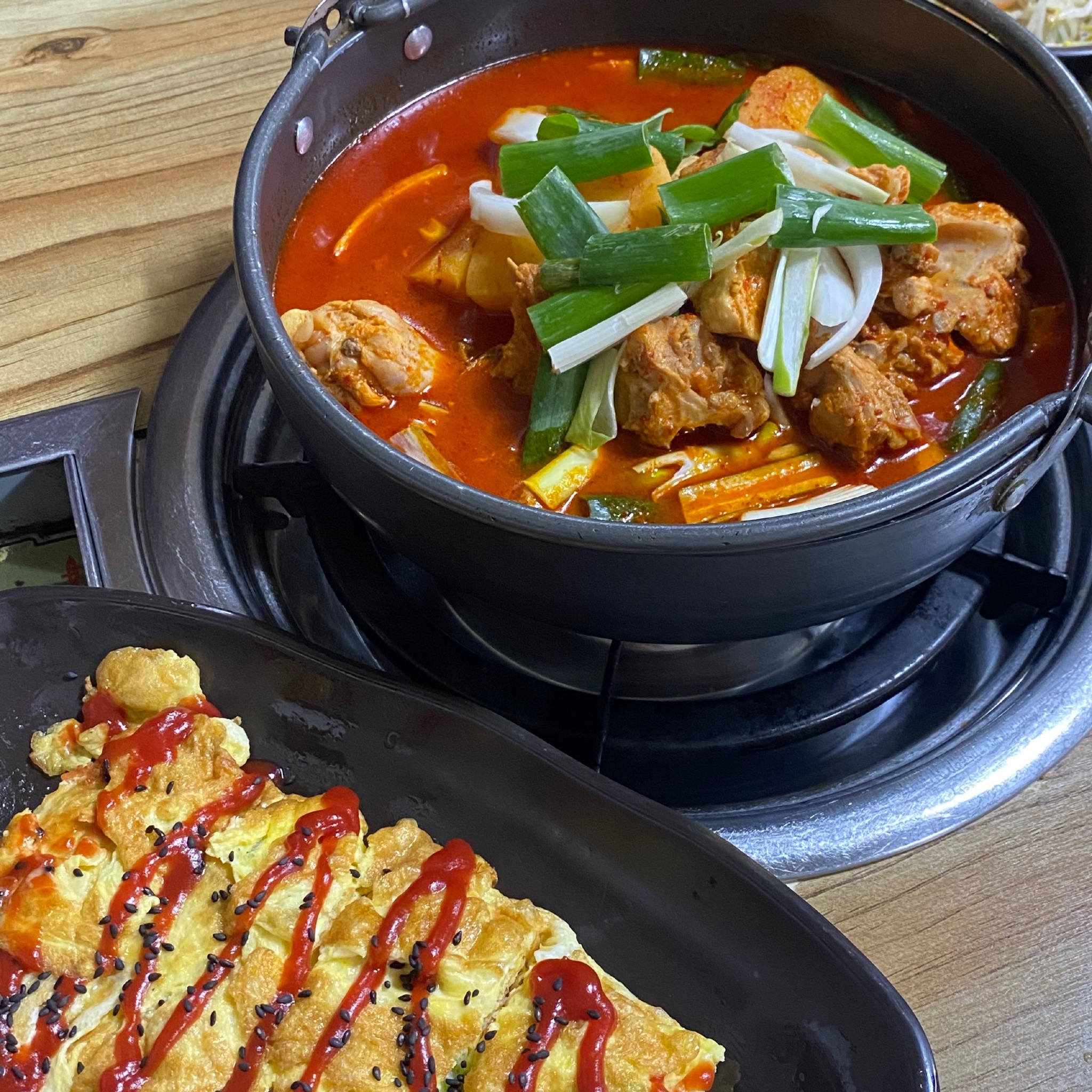 最後は流行り韓国料理!닭토리탕(タットリタン)を初めて食べました!韓国人のお姉さんが닭토리탕を食べたことが無いと言う私に驚いて食べさせてくれました。韓国では1番王道メニューのキムチチゲに次いで人気とと言ってもおかしくないくらい人気で有名なメニューだそうです!もちろん他のメニューも人気な料理が多いですが、給食で出るとみんなが喜ぶメニューだと他の友達も言っていました。少し辛めに煮込んだ鳥の鍋のような料理で、寒い冬には冷えた体にしみる味でした!似たような鳥の鍋料理には参鶏湯(サムゲタン)がありますが、参鶏湯は反対に白くてスッキリとした味で辛くないので辛いのが苦手な日本人も食べやすい料理です。