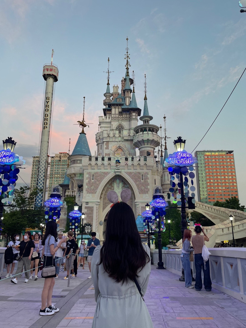7月15日に、一学期に一回ずつ行われる文化体験がありました。今回は、ロッテワールドへ行き、コロナ禍になって初めて屋外での文化体験でした。ロッテワールドは韓国内で最大の屋内テーマパークとされており、日本にいたときから訪れたかった場所だったため、行くことができてとても嬉しかったです。韓国の学生は夏休み期間のため、来場者が多かったのですが、モバイルアプリでアトラクションの待ち時間を確認しながら、スムーズに行動することができました。