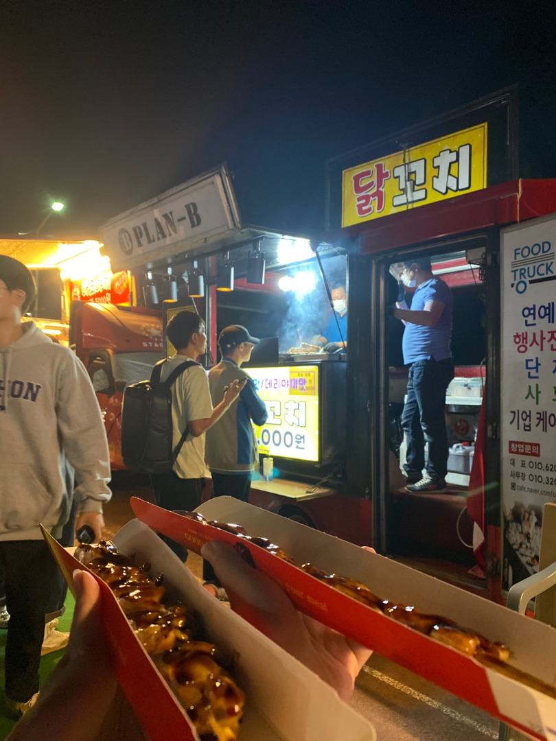 今回、韓国の学祭に参加してみて、日本の学祭とは違う雰囲気を感じました。日本の学祭では大量のお酒を飲むイメージはあまり無かったのですが、韓国の学祭でお酒は欠かせません。出店には簡易的な椅子とテーブルが準備されているのですが、席は争奪戦でびっしりと埋まっていました。学祭期間の学校近くのあるコンビニは、お酒が外にも陳列されるほど大量に入荷され、学校内のコンビニにもお酒が大量入荷されていました。学生たちは、日頃の勉強の疲れを解消するように、公演を観覧しながらお酒を飲んだりして、とても生き生きして盛り上がりました。