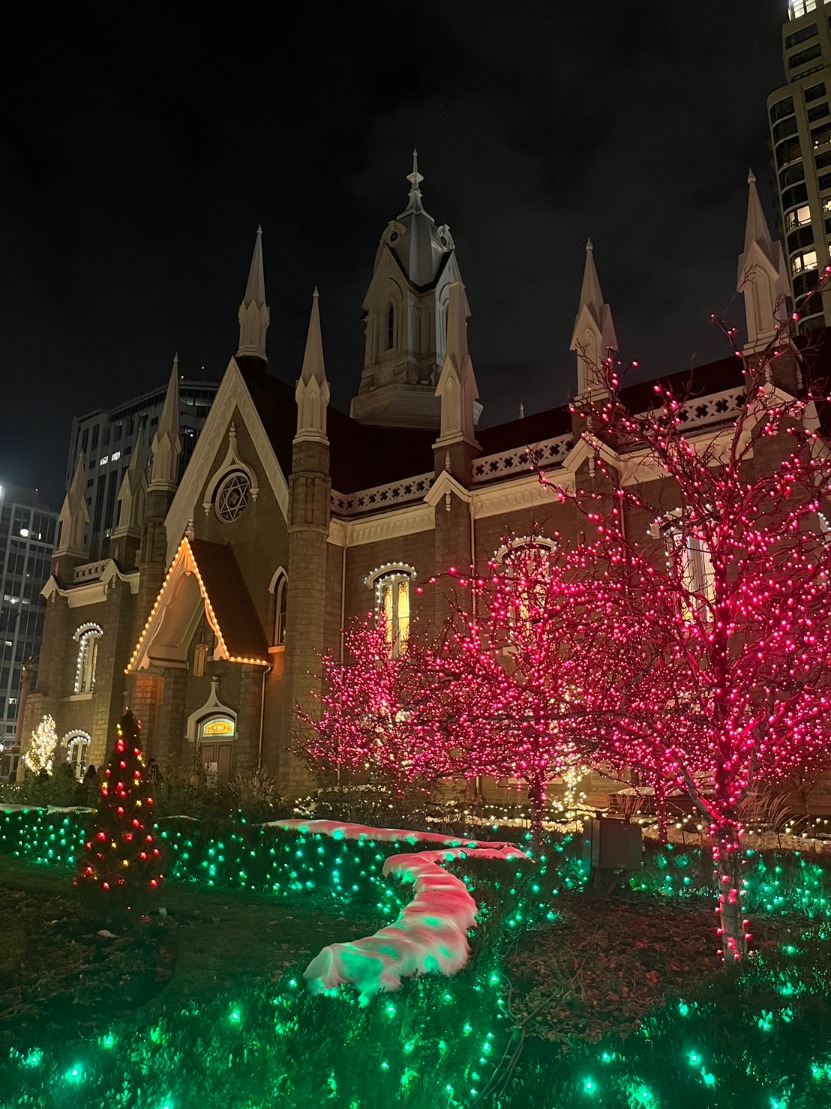 クリスマスの日は友達とユタ州の州都であるソルトレークシティへ行ってきました。12月上旬に予約したシャトルバスが、当日の前の日にバス会社からキャンセルされるというトラブルがあり、急いで当日の朝早いバスに変更しました。アメリカのシャトルバスでのトラブルは必ずあると思っておいた方がいいかもしれません。ソルトレークに到着すると、クリスマス当日はすべての店が閉まっており、街の中を歩いていても人も全くいませんでした。夜になると、人も段々増え始めたので、ソルトレーク寺院の中にあるイルミネーションを見に行きました。寺院の中にも入ることができ、とても綺麗でした。また、ソルトレークは州議事堂が有名ということで、ユタ州会議事堂へも行ってきました。ライトアップされた議事堂の建物もとても綺麗でした。下の写真は、イルミネーションと、寺院の中の様子と、ユタ州会議事堂です。計画通りのクリスマスではありませんでしたが、楽しく過ごせたので満足です。同時に、アメリカではクリスマスの日は完全に店を閉め、外出を控え、家族との時間を大事にするところが素敵だなと思いました。