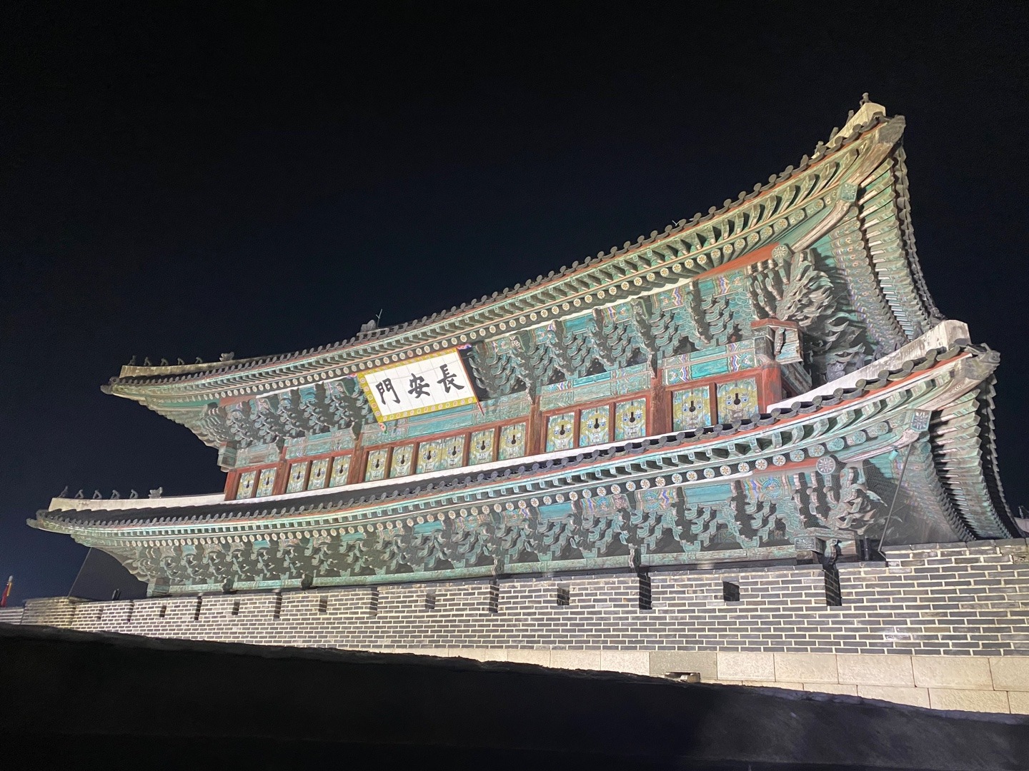冬休みに入り勉強が少し落ち着いたため、仁川や水原等、京畿道の少し遠いところに遊びに行ったり、ソウル市内の観光を楽しんだりしました。昨年度、韓国のハンナム大学に交換留学で来ていた當銘さんと一緒に韓服を着て、景福宮に行きました。韓服を着ていくと入場料が無料になるため、文化体験も兼ねて韓服をレンタルすることをおすすめします。景福宮は朝鮮王朝の王宮で、ソウル市内にある5大古宮の中で敷地面積が最も大きいです。私たちが訪れた時に「守門将交代式」といって、朝鮮時代に景福宮を守っていた守門将の交代儀式を再現したパフォーマンスがあり、観覧することができました。韓国の歴史を詳しく見ることができる貴重な体験ができてよかったです。