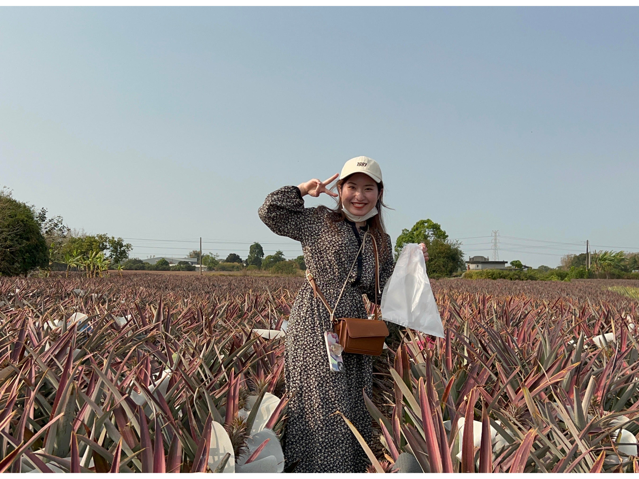また、初めて台南に行き、お寺に行ったり、台湾といえば!のスイーツ、鳳梨酥(パイナップルケーキ)作り体験をしたり、パイナップル畑に行き、パイナップル収穫体験をしました。パイナップルケーキは以前から好きでしたが、自分で作った出来立てのケーキの味は格別で、さらに好きになりました。沖縄にもパイナップル畑はありますが、パイナップル収穫は人生初で、トゲトゲした畑の中で収穫したパイナップルの味はとても糖度が高くて、格別でした。