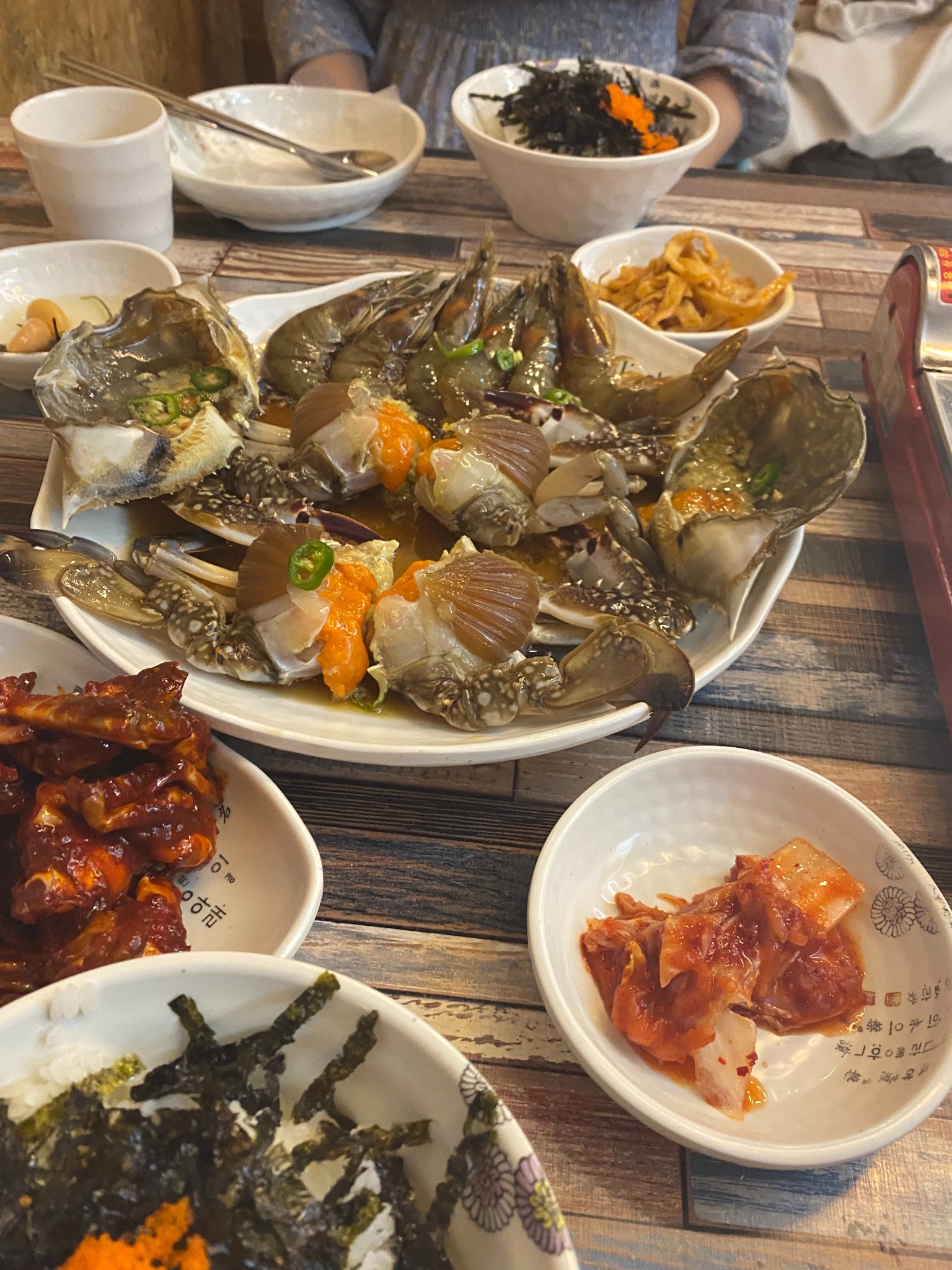 8月初旬では、韓国に留学に来ていた友達と東大門に行き観光をしました。東大門は初めてだったので、慣れている友達に案内してもらいながら、初めてカンジャンケジャンを食べてたり、卸売り市場を巡ったりしました。そして、初めて汝矣島にある現代百貨店を一緒に巡るなど初めての体験を沢山することが出来ました。中旬には同じ沖縄国際大学の学生で1か月の留学に来ていた2人の友達とHYBEの事務所で写真を撮ったり、事務所の周辺のカフェを探索したりしました。彼女たちは韓南大学に留学しておりソウルに来るのが初めてだと言っていたため、ソウルを案内できてうれしかったです。下旬にはちょうど語学堂も終わり夏休みに入ったため、旅行に来た友達と5泊6日の旅行をしました。景福宮を観光した際に王様の行列を再現したものを初めて見たり、一緒にかき氷を食べたりなど韓国を沢山楽しみました。その中でも2つほど特別な体験をすることが出来ました。1つ目は狎鷗亭にある美容室でのメイクアップ体験でした。元々韓国でメイクアップをしてもらうことが夢だったのですが、勇気が出ず、今回ついに受けに行けました!私が受けた美容室は、日本人のお客さんがほとんどで日本語も堪能な職員の方が沢山いらっしゃいました。ですが実際施術を受けてみると、お客さんの数が多いせいか、やや適当な所も多く、少し悲しかったです。ですがまた1つ体験できたのは良いことだなと思っています。2つめは、ダンスのレッスンを受けに行きました。YGという会社のダンサーが所属しているYGXという所でレッスンを受けたのですが、その日の先生がテレビにも出演されていた有名な方でした。レッスン内容は久しぶりに踊る私にはとても大変なものでしたが、本当にハイレベルで光栄な体験だなと感じました。
