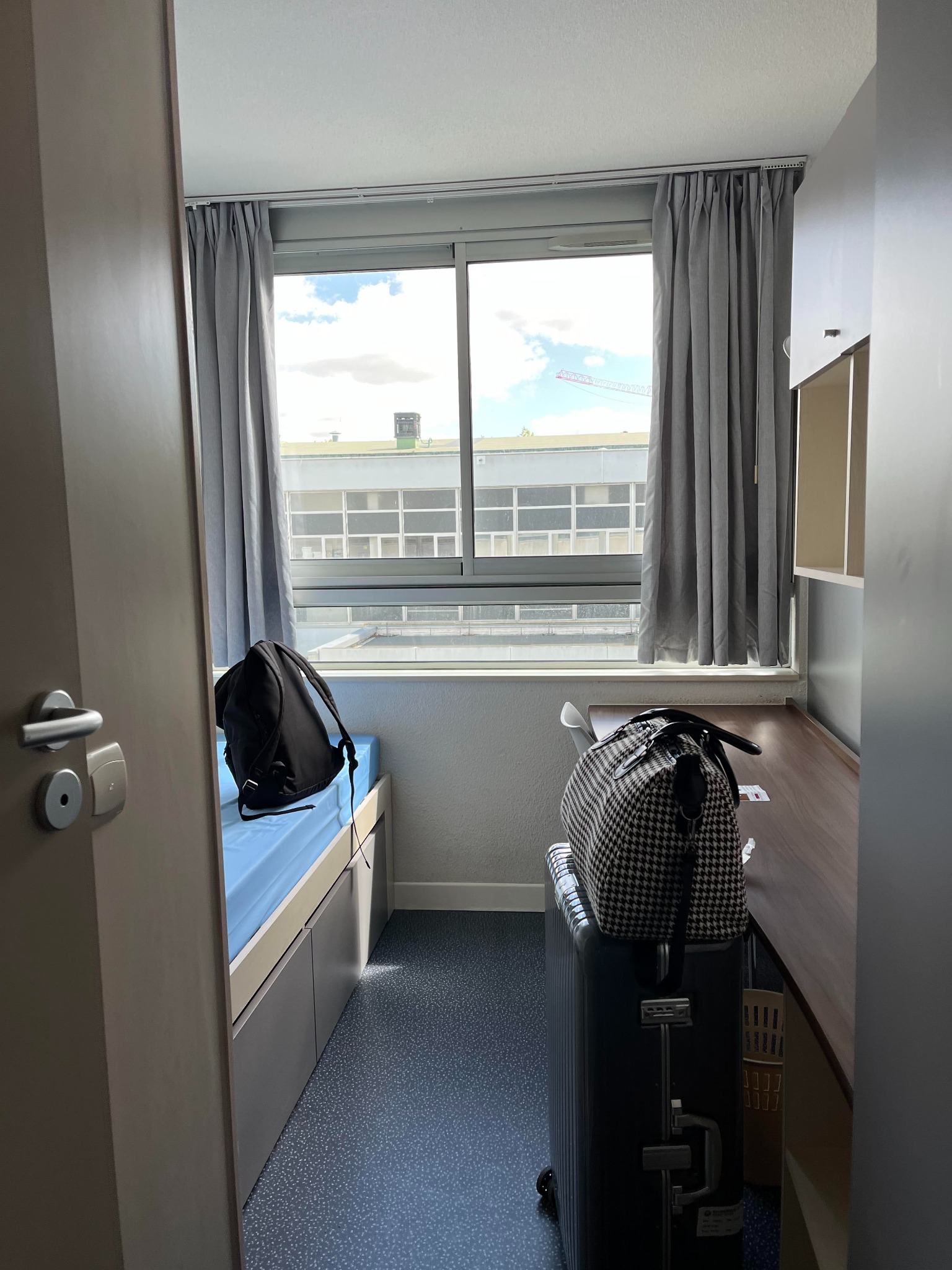 寮の部屋は、写真の通り狭いですが収納が思いのほか多く、あまり不便には感じません。ですが、部屋の窓には(建物にもよりますが)網戸がない場合が多く、私はかなりの虫嫌いなので日本から網戸を持参しました。寮の周りは自然がいっぱい(虫もいっぱい)なので、不安な方は網戸の持参をお勧めします!