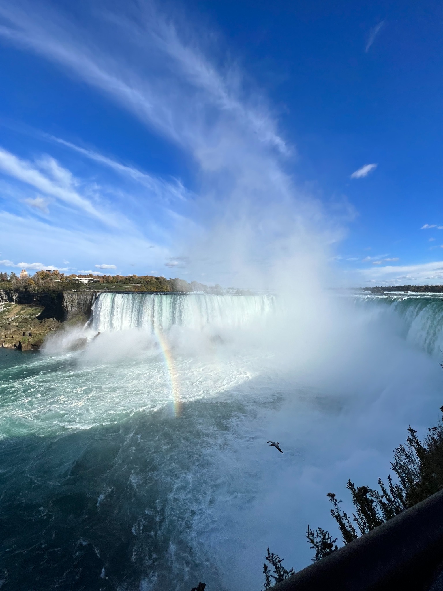 私はtermのあいだに5日間の休みがあったので日本人の友達4人(総勢5人)と一緒にトロントへ2泊3日の旅行に行きました。1日目は、本命であったナイアガラの滝に行きました。とてもスケールが大きく圧倒されっぱなしでした。沖縄では絶対に見られない光景なのでいってよかったと思いました。また、ナイアガラの滝をまじかで見れるツアーがあり、ボートに乗って近くで見ることができました。水しぶきがすごく大雨に打たれているようで、うまく写真や動画が取れなかったのが懸念点です。ボートツアーは$40くらいで乗れるので、もし行く際はぜひ乗ってください!!!