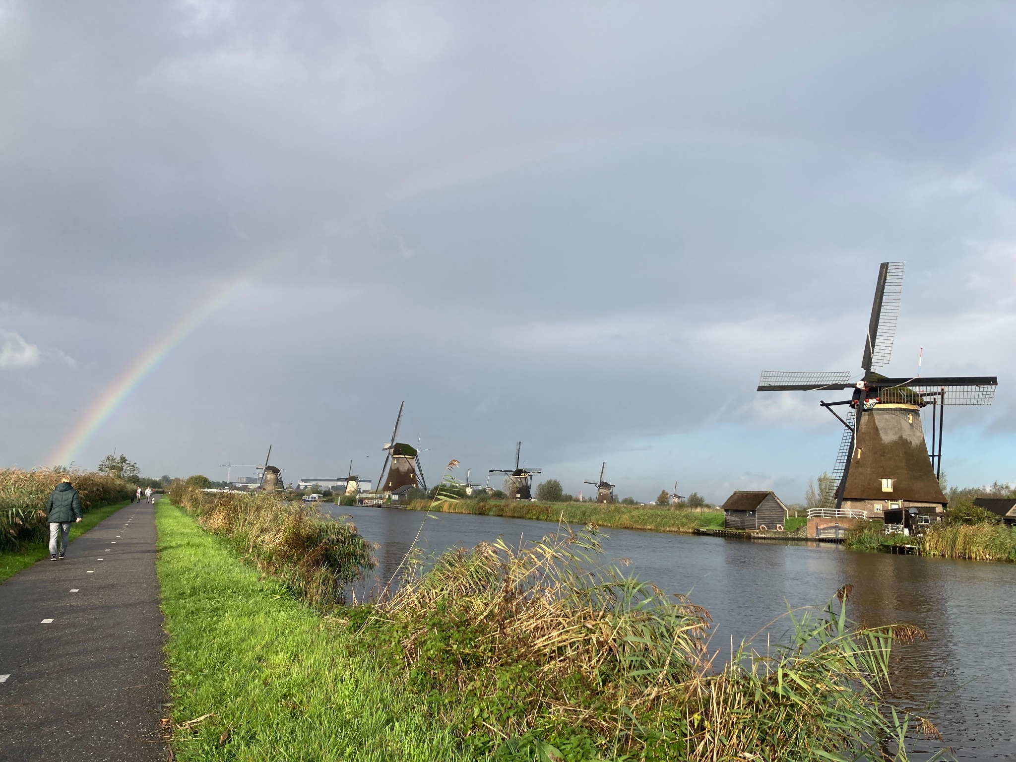 10/29〜11/5の初バカンスは、日本から持ってきたカードを使って過ごせました。最初はベルギーでブリュッセル、ヘントとアントウェルペンで歴史的な建物を見ることができました。ベルギーの古都でヘントが美しい街並みで魅力的でした。ブリュッセルに滞在し、日帰りでヘントを訪ね、ヘント内は徒歩で見て回れます。散歩している間ずっと中世の家並みが見え、川を挟んで東側をグラスレイ、西側をコーレンレイと呼ばれ、両側には昔の豪商たちのギルドハウスがあります。現在はレストランやお土産屋さんになっていますが、建物の中も綺麗な装飾があり見応えがあります。その後はバスでオランダに向かいオランダでは、ロッテルダムとアムステルダムに行きましたが、私はロッテルダム近くの文化遺産のキンデルダイクの風車群がお気に入りになりました。私が訪ねた時は、天気が悪かったので綺麗な景色が見られるか心配だったのですが幸運なことに、虹がかかって幻想的な景色を見ることができました。キンデルダイクの風車の羽は、1枚14メートルもあるそうです。小さな三角屋根の小屋の上に背の高い小屋が乗っているタイプの風車は最も古い型式の風車で19台も設置されています。現在、オランダでは風車を取り壊すことが多いので、19台もの風車を見ることは滅多にできません。オランダに訪れた際は、文化遺産のキンデルダイクの風車群を見学してみて下さい。