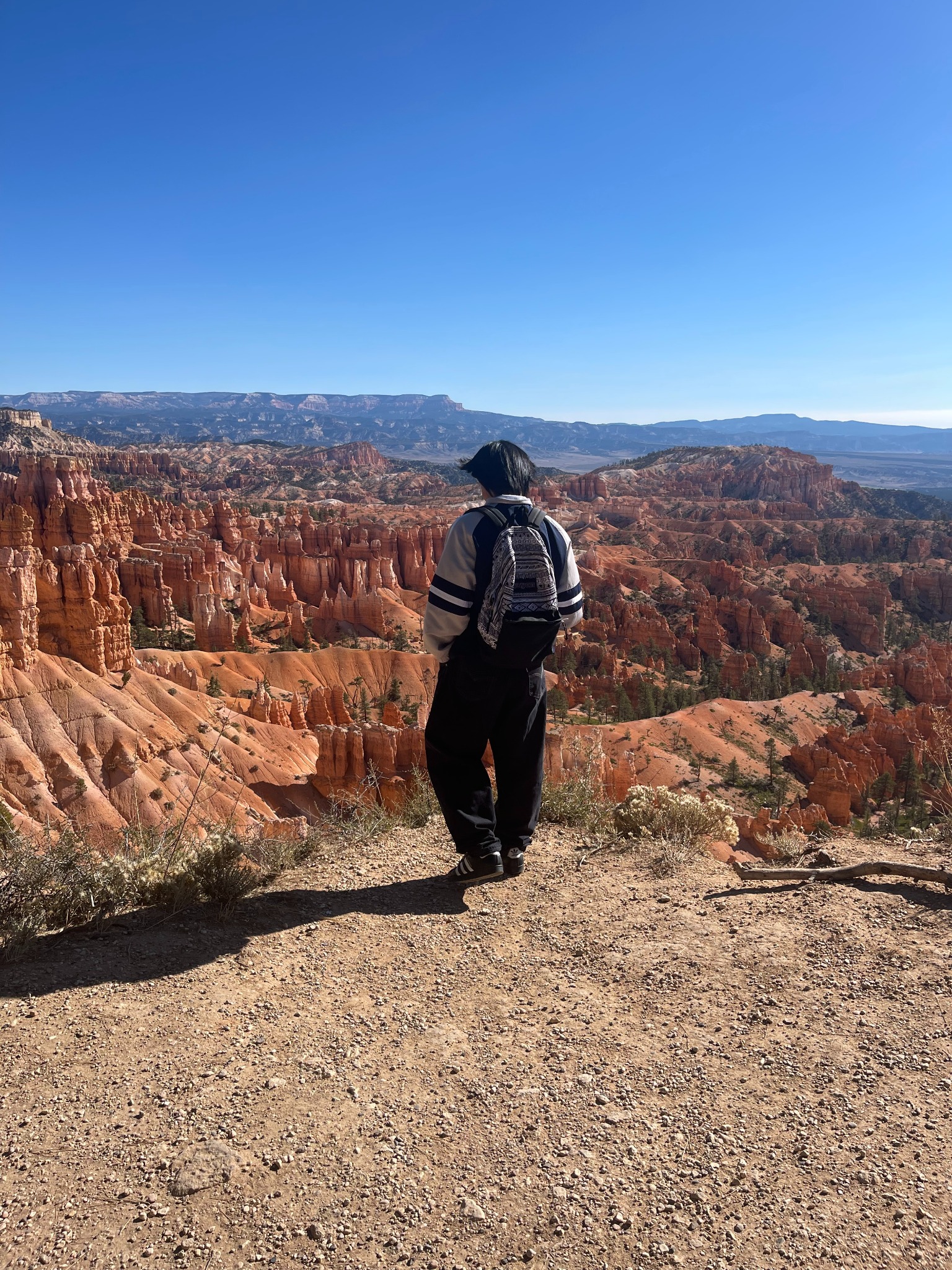 まず10月7日に学校側がバスを出してくれて、Bryce Canyonに連れて行ってくれました。十時半ごろに現地に到着して、三時ごろまで自由時間がありました。私はウオーキングコース的な場所を回りました。途中で昼休憩をしたり、写真を撮りました。一歩間違えたら落ちるような危険な場所もありましたが、とても楽しかったです。