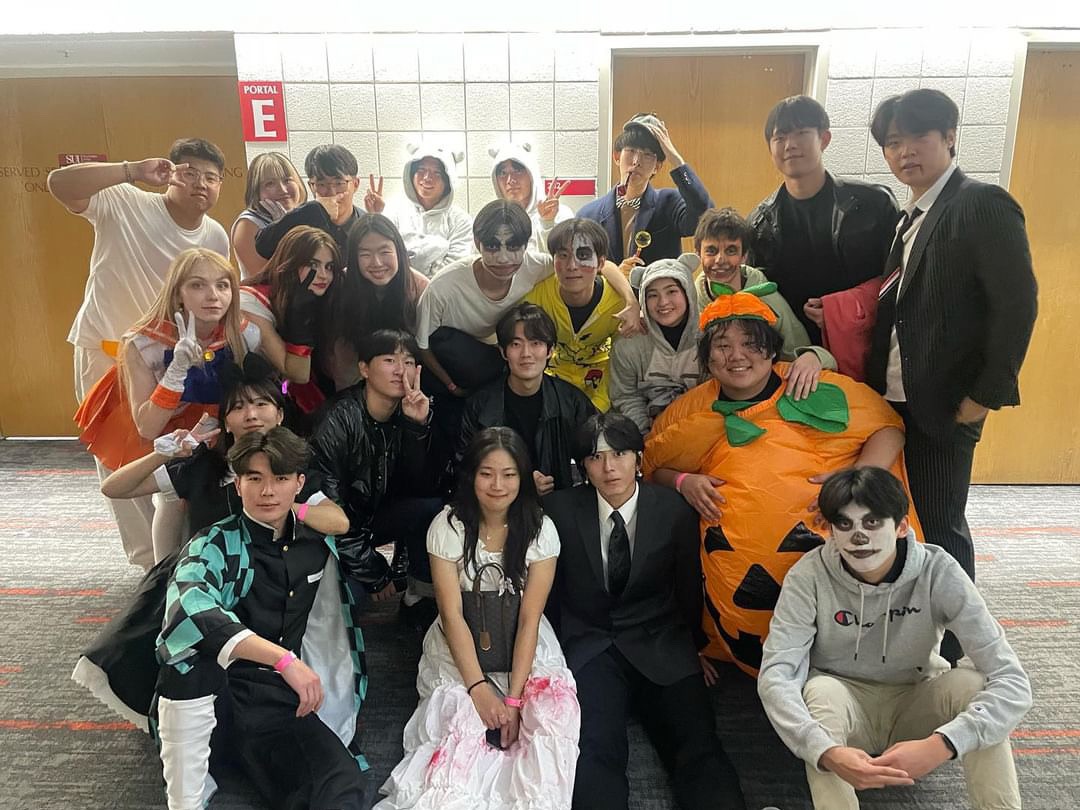 次に10月29日に学校内でハロウィンのイベントがありました。アメリカのハロウィンイベントは日本と比べて盛大で、ほとんどの学生が派手な仮装をしていました。私は同じ沖国からの留学生と三人でジブリのトトロの仮装をしました。イベントではダンスパーティーや不思議な飲み物がもらえたゲームなどをして夜中まで騒いでいました。とても楽しかったです。