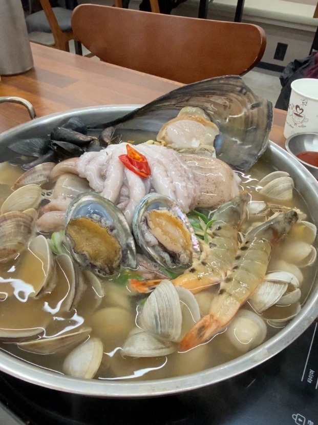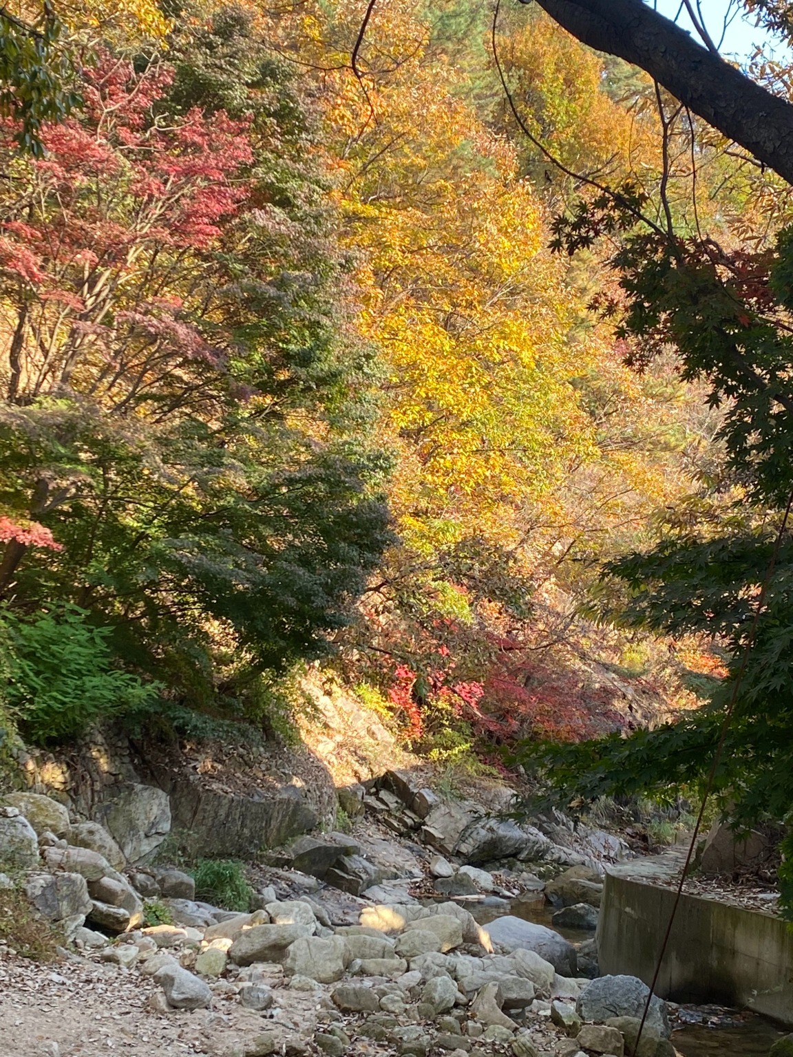 そして10月は、試験が終わり友達と紅葉を見に行くことが休日の過ごし方になっていました。まず、韓国人の友達と韓国の上の方にある北漢山に2時間かけて行きました。韓国に来て初めて山の近くに行ったのですが、初めて見る紅葉と久しぶりに感じる自然に感動しました。天気も暑くなくちょうど良い気温で綺麗な紅葉を見ながらリラックスできました。夕食には友達が教えてくれた海鮮グクスで有名なお店に行き、タコ、イカ、アワビなど海鮮のたっぷりなグクスと大きなえびの乗ったチヂミを食べました。お鍋には見たことのないぐらい海鮮が乗っていて、寒い時期にはピッタリでした!