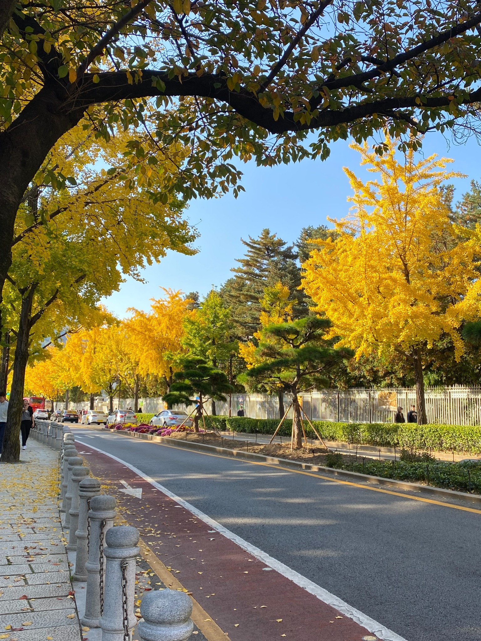 違う日にはキョンボックンの方に紅葉を見にいきました。人気のブランチを食べた後に街の紅葉を散歩がてらに見たのですが、きれいに銀杏が黄色になっていて圧巻の景色でした。キョンボックンは建物と紅葉の組み合わせがとても綺麗でまた見にいきたいと思いました。他にもお話ししたいことはありますが、今月はここまでにしたいと思います。11月も引き続き気を抜かず頑張って行きます!最後まで読んでいただきありがとうございます。