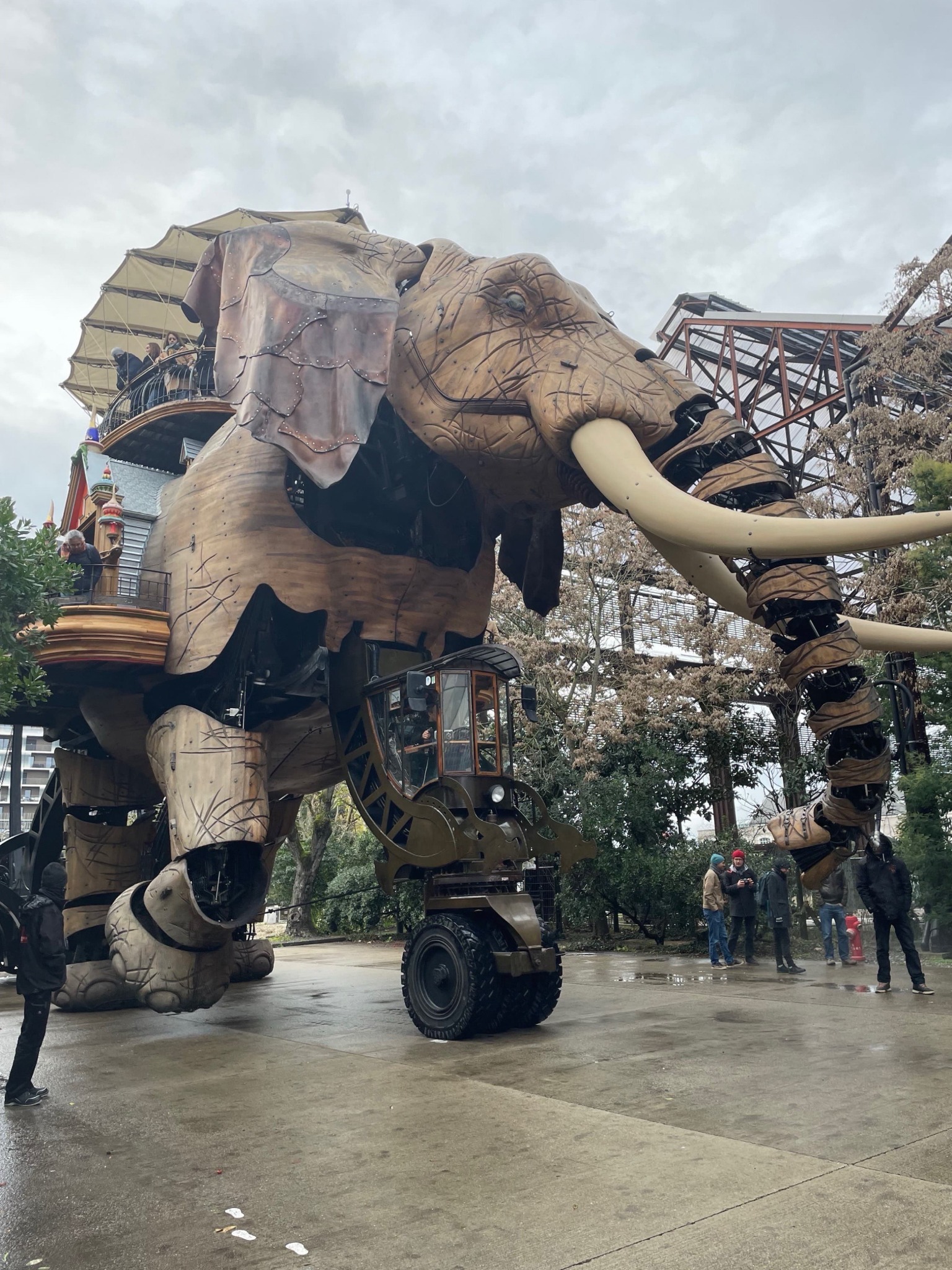 次にナントの観光地として有名なマシーン・ド・リールに行きました。マシーン・ド・リールでは、機械仕掛けの巨大な象が施設内を動いていました。その象の背中部分は人が乗れ、子供から年配の方まで楽しんで乗っていました。この施設には様々な機械仕掛けの生き物が展示されており、鳥・蝶・蜘蛛・魚・トカゲといった他の機械仕掛けの生き物も見ることができます。