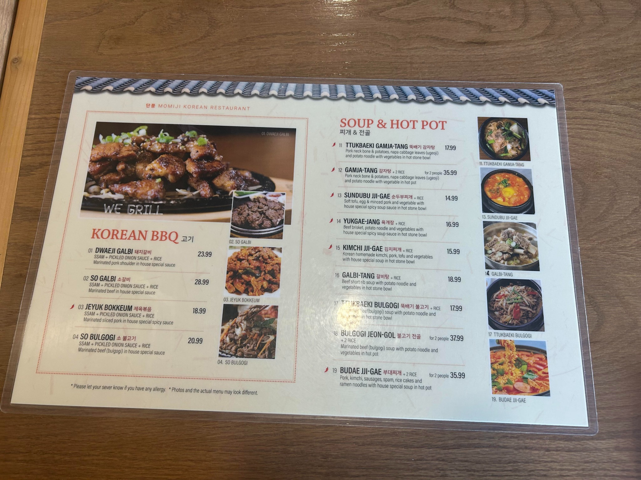 次に韓国料理レストランについて紹介したいと思います。そのお店の名前「DANPUNG MOMIJI 310」というお店です。私がそのお店をおすすめする理由は値段もお手頃で、メニューの種類も豊富で美味しいご飯を提供してくれるからです。また、そのメニューもカナダではほとんどが値段と料理名、その食材だけをメニュー表に記載しているだけで写真などがなく、実際にどんな料理なのかは出てくるまではわからないという感じなのですが、このお店では料理に一つ一つ番号が振られ、その横にその番号に対応する料理の写真が記載されていて、どれがどんな料理なのかがわかるようになっています。よく韓国料理は辛いものが多いというイメージがありますが、ここではその写真を見ることによって辛い料理と辛くない料理がわかり、安心して料理を注文することができます。またこれら公園とレストランまでの料理は徒歩15分程度なのでナナイモに訪れた際にはこれら公園とレストラン両方に訪れてみてください。