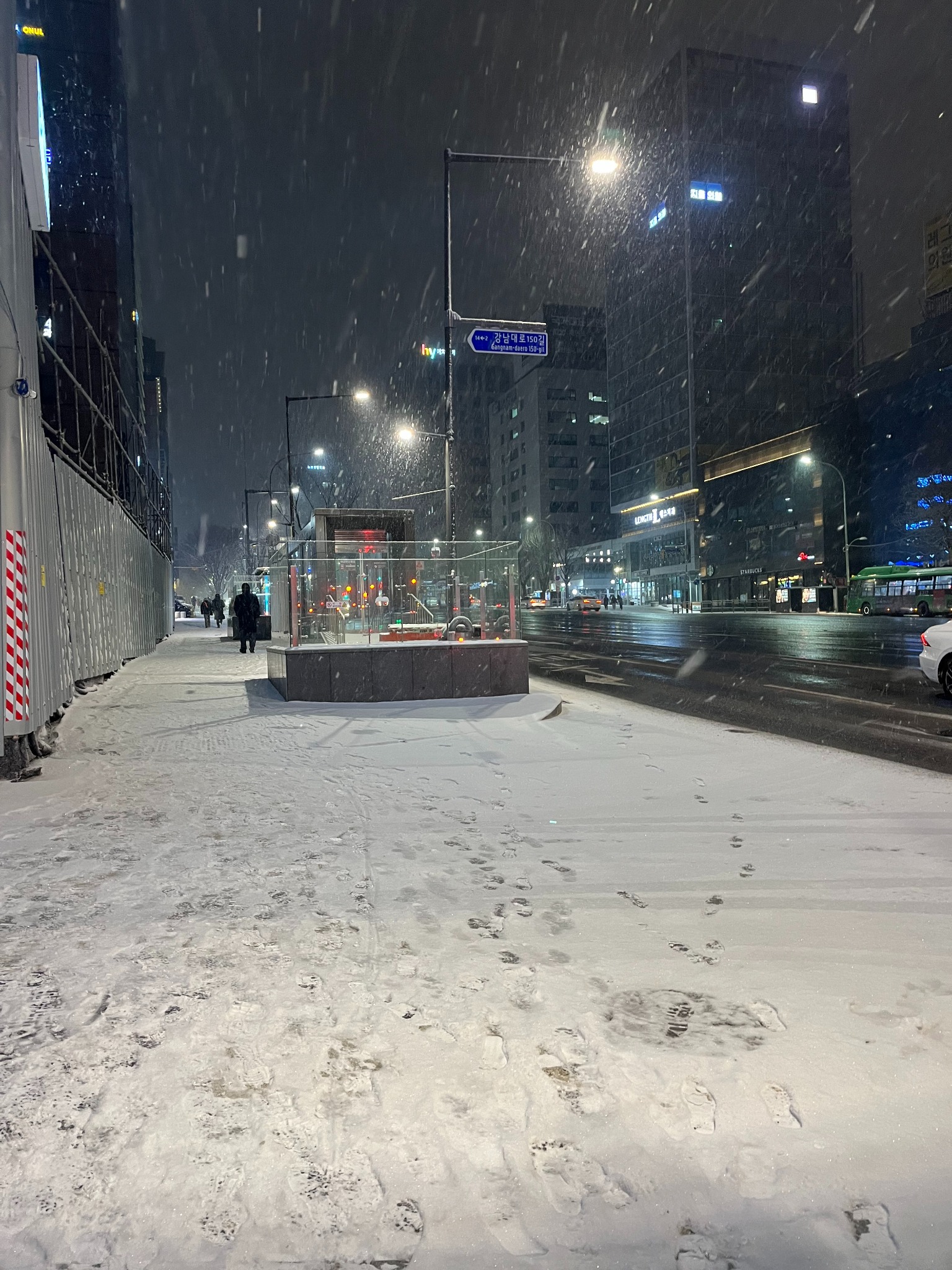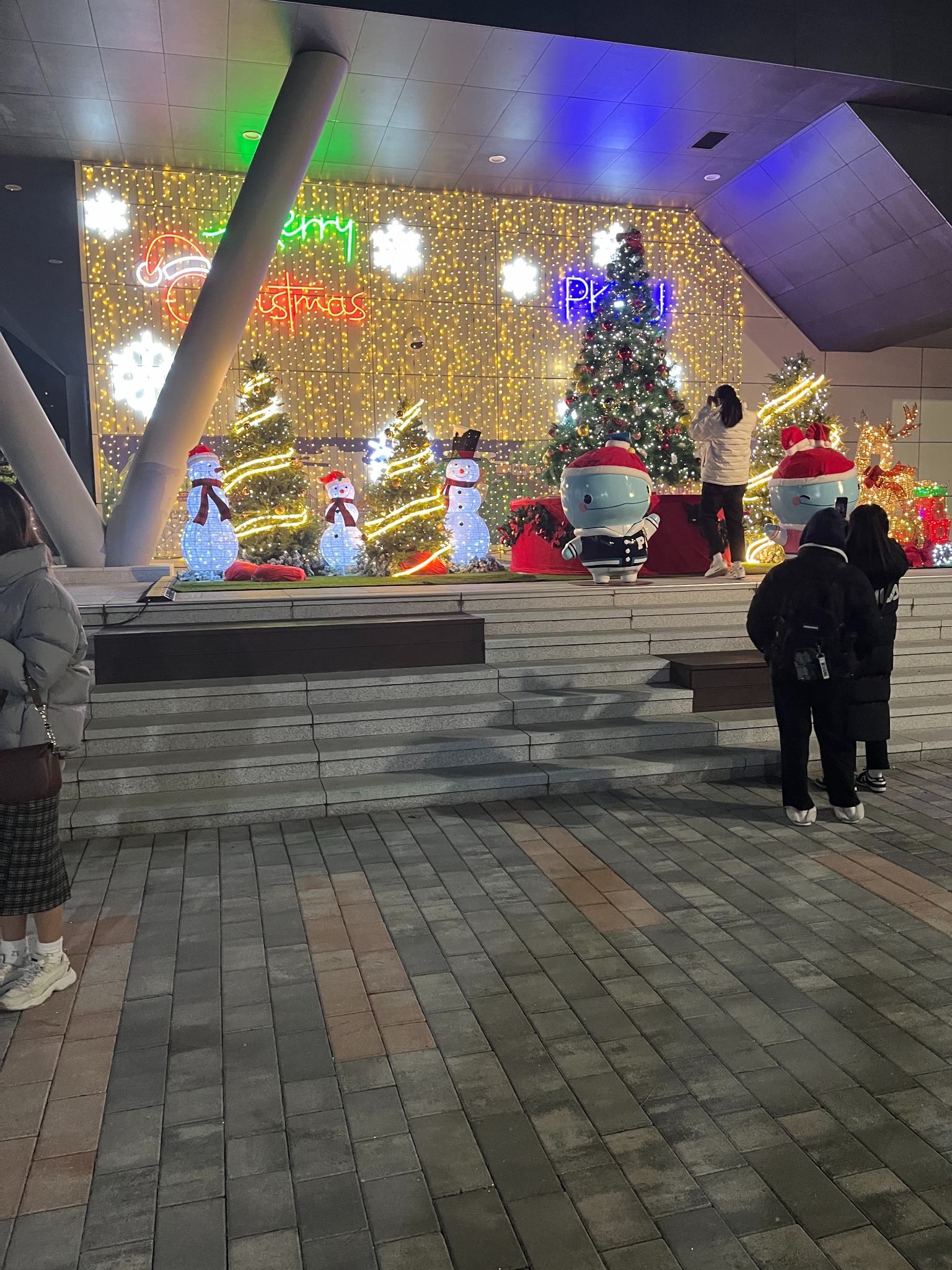 また、クリスマスの時期に友人に会うためソウルに行きました。釜山もそうですが、クリスマスの時期にはイルミネーションや電飾で街が飾られていて、とても華やかな雰囲気がありました。そして、ソウルでは人生で初めての雪を見ることができ、雪とイルミネーションの組み合わせがとても綺麗でした。