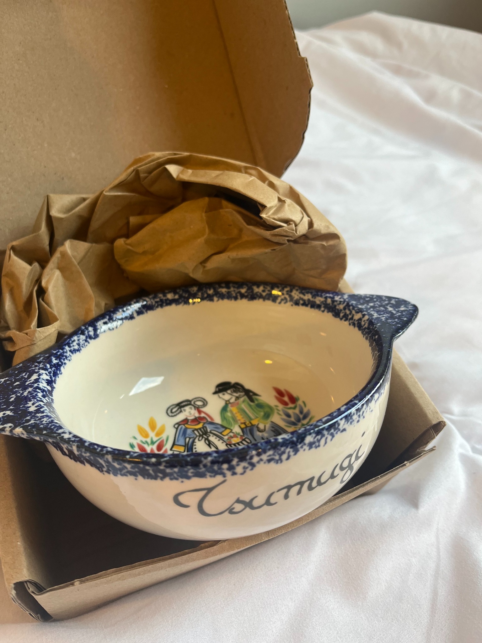 そして、その友人の出身、カンペ―ル地方伝統のカンペ―ル焼きのボウルを、私の名前付きでプレゼントしてくれました。