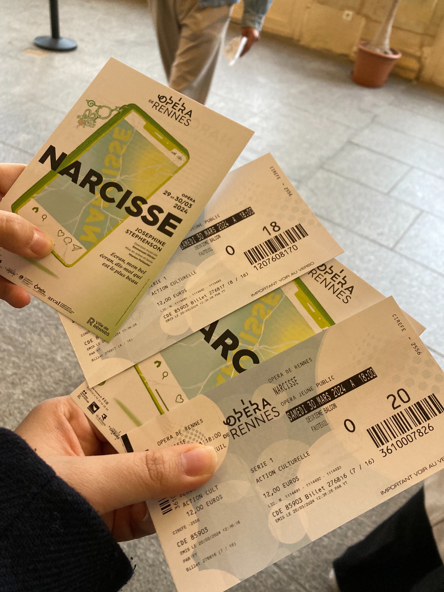 その翌週には、”Narcisse”というオペラを見に行きました。前期に挑戦したオペラでは、理解することが困難でしたが、今回の話は理解することができたのでフランス語が上達したことを実感できて嬉しいです。ギリシャ神話のナルキッソスの話と現代のSNS文化をコラボさせた興味深い話で、愛に対する捉え方がフランスらしいと思える作品でした。CIREFEの行事に参加することで異なるレベルのフランス語学習者やフランス人とも関わること、ブルターニュ地方専門のガイドから直接お話を聞くことができるのでRennes2に留学する方は参加しても損することはないのでお勧めします!