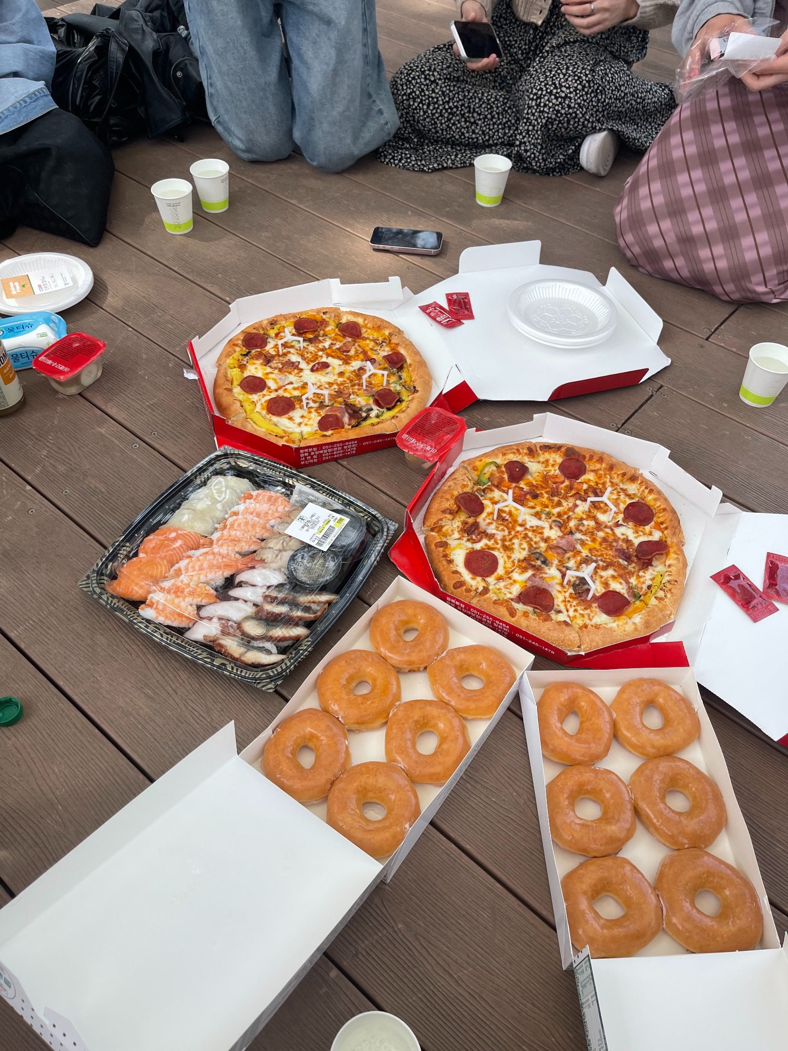 4月には韓南大学に派遣されているカリンさんとモモコさんが釜山に遊びに来てくれました!みんなでNCT도재정のカフェに行って美味しいご飯を食べたりおしゃべりしたり楽しい1日を過ごしました。アイドルのマスターさんが企画したカフェに行くのは初めてだったのでとても楽しかったです。ドリンクを注文したらトレカやポストカード、ステッカーなどたくさんの特典をもらうことができて韓国来た〜っていう感じがしました。次は私が大田に遊びに行こうと思います。それから4月にはI-friendでピクニックをしました。ピクニックの時に食べた이재모ピザというお店のピザが本当に美味しくてみんなにも1回食べて欲しいです。ピザにさつまいものペーストが乗っていて、初めはピザにお芋ってどんな組み合わせと不思議に思いましたが食べたら本当にめちゃくちゃ美味しかったです。