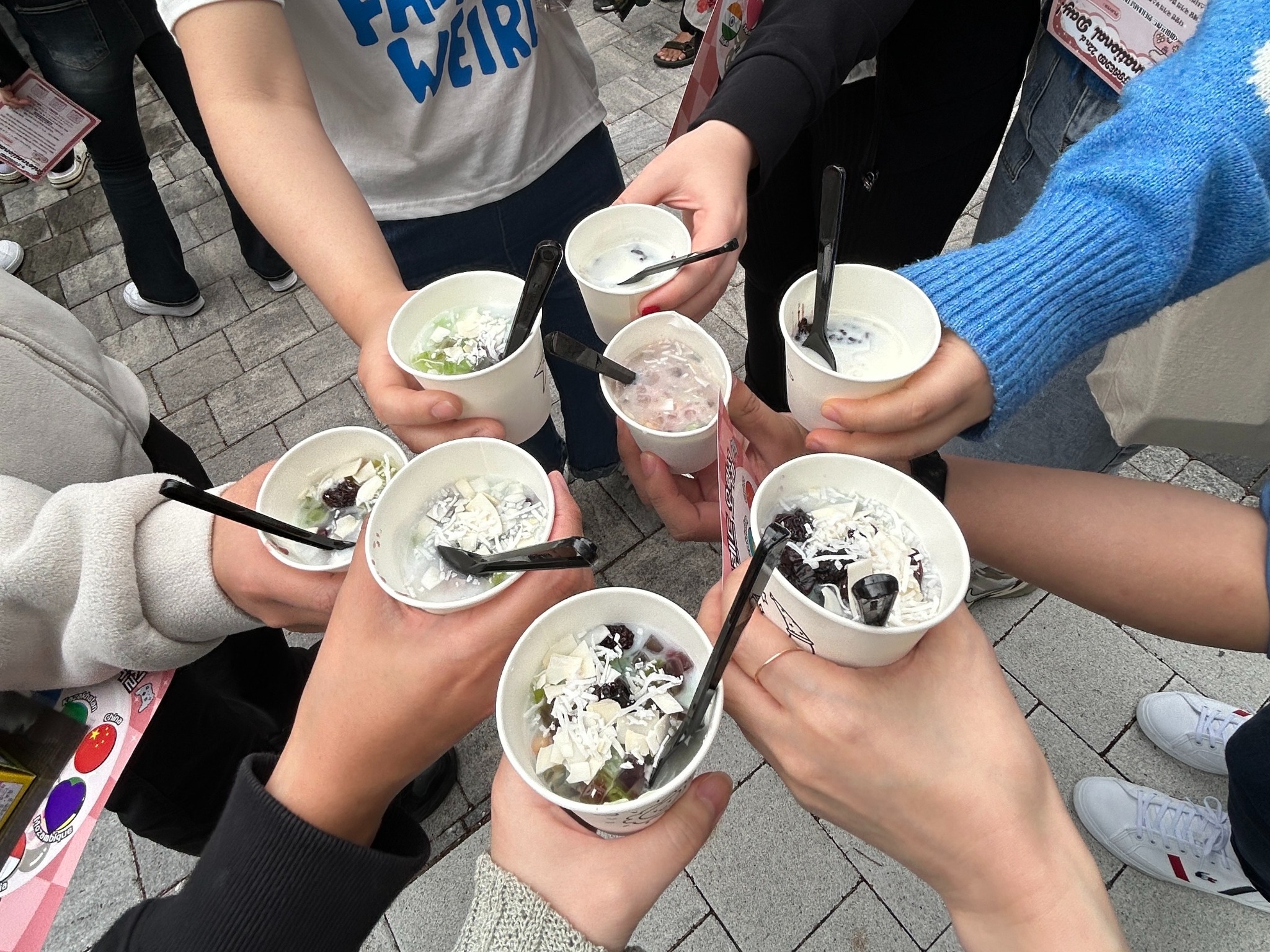 次に、学祭についてです。留学に行く前から韓国の大学の学祭に憧れがあったので留学生活の中での楽しみにしていたことの一つでした。釜慶大学は3日間行われ、インターナショナルデイやコンサート、100周年の花火、様々なブースがあり沖国とはまた違う雰囲気の学祭で沢山楽しむことができました。インターナショナルデイでは、様々な国の伝統的な食べ物や遊びをしたりして、初めて見るもの知るものが沢山あって楽しかったです。夜に行われるコンサートには、LOCOやHEIZE、VIVIZなどが来ていました。雨が降ってしまった日もありましたが留学生活の中で大切な一つの思い出になりました。