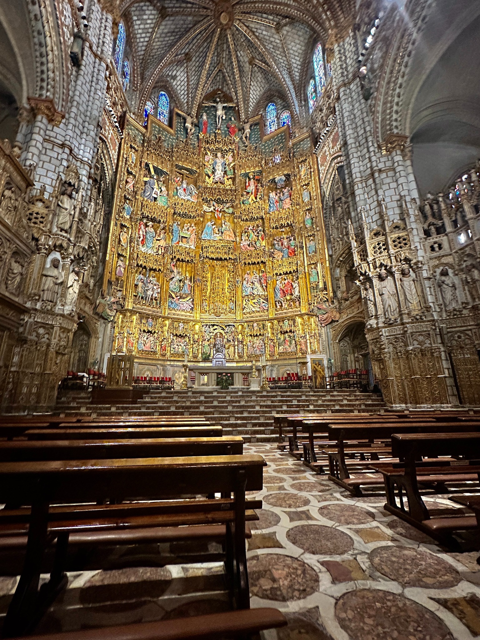 語学学校は、8月に集中コースが終了し、秋コースが始まる9月16日までは休暇だったのでマドリードを経由してトレドに行きました。トレドでは、サンタ・クルス美術館や軍隊博物館、トレド大聖堂を巡り、歴史ある街並みを体感することができました。特に大聖堂は、長い年月をかけて造られたため、様々な建築様式が混在しスペイン建築の変化を見ることができました。内部はとても広く、黄金の主祭壇があり『新約聖書』におけるイエス・キリストの生涯の20の場面が綴られていました。世界遺産にも登録されており、マドリードから日帰りも可能なので、機会があれば行くことをお勧めします。