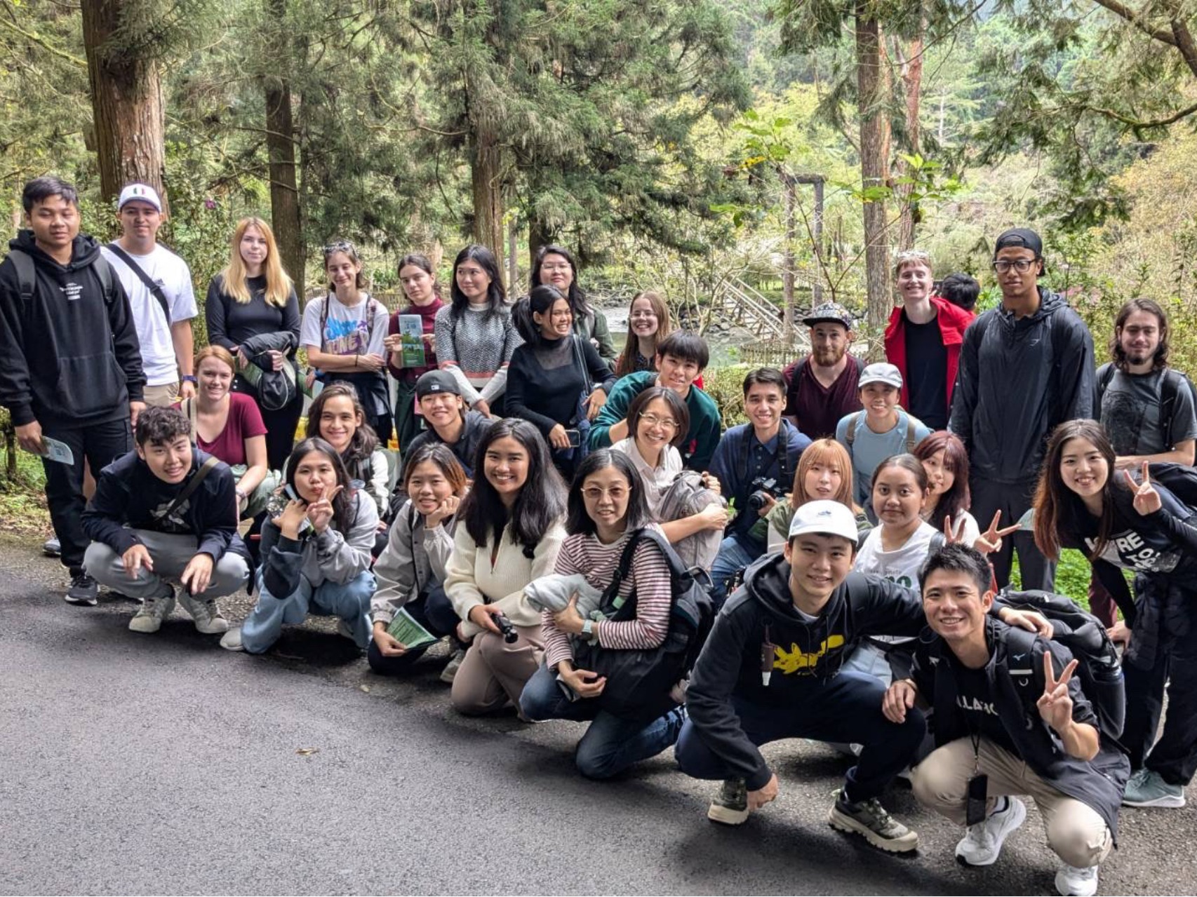 今回初めて語学学校が主催する校外学習のイベントに参加することができました。大学から約1時間半かけて南投の「溪頭自然教育園區」という場所へ登山をしに行きました。台湾に来てから友人や先生たちに登山を勧められていたのですが、留学が始まってだいぶ経ちますがようやく行くことができました。山の空気は美味しく、景色も綺麗で、一番驚いたのが野生の猿が多くいたことです。人馴れしているのか、人間が近寄っても逃げたりせずゆっくりと目の前を通りすぎていく猿もいました。みんなで少し登ったあと各自で自由行動となったので、友人と一緒にお昼ご飯を済ませたあと、もう少し登ることにしました。始めは寒かったのですが、ひたすら歩いていたので段々熱くなったので途中から半袖になり歩いていました。このとき厚着をして来なくて正解だと思いました。何とか登り目的の場所にたどり着き、下山は楽かと思ったのですが、意外と下山の方が大変だということを知りました。足腰の負担が登りより大きく、気を抜くとつまずいたりしたので登りより慎重になりました。標識の通りに下って行ったのですが心配になると必ず誰かが、「我們迷路了嗎?(私たち迷子?)」と言っていたのですが、集合時間に余裕で間に合いました。時間が経つにつれて霧が濃くなり全員が集まるころには、白い霧で辺りが見えづらくなっていました。霧が濃くなる前に戻って来られてよかったと改めて思いました。不安な気持ちで登り始めましたが、終始笑っていたので結果楽しく過ごすことができました。一度も参加することができなかった校外学習に最後の最後で経験することができたので本当に良かったです。