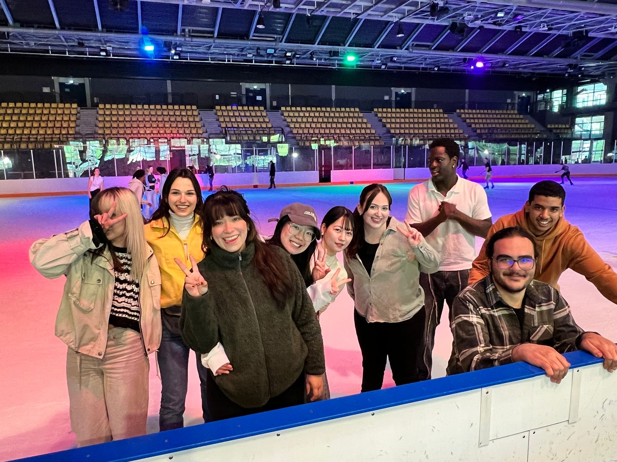テストが終わった後、語学学校の仲間とアイススケートをしました。最初は滑れなかったのですが、友達に教えてもらい結構滑れるようになりました。