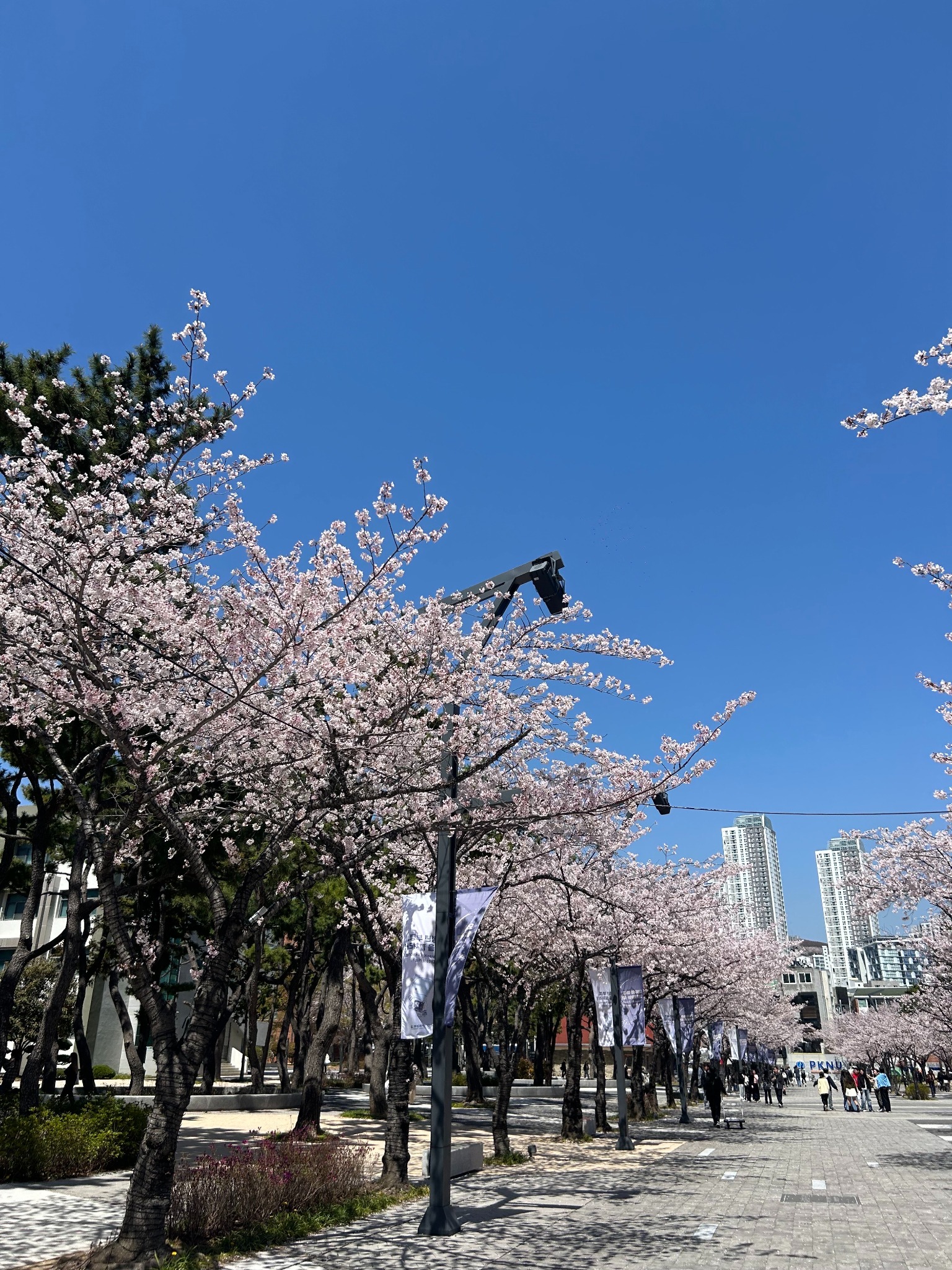 それから3月の後半には「ピンクキャンパス」というイベントがありました。学校中に桜が咲いていてとても綺麗です。沖縄では見ることのできない光景だったのでとても感動しました。このイベントでは様々なブースが用意されていて、ゲームや屋台、ステージでのパフォーマンスなど学祭の雰囲気でとても楽しかったです。
